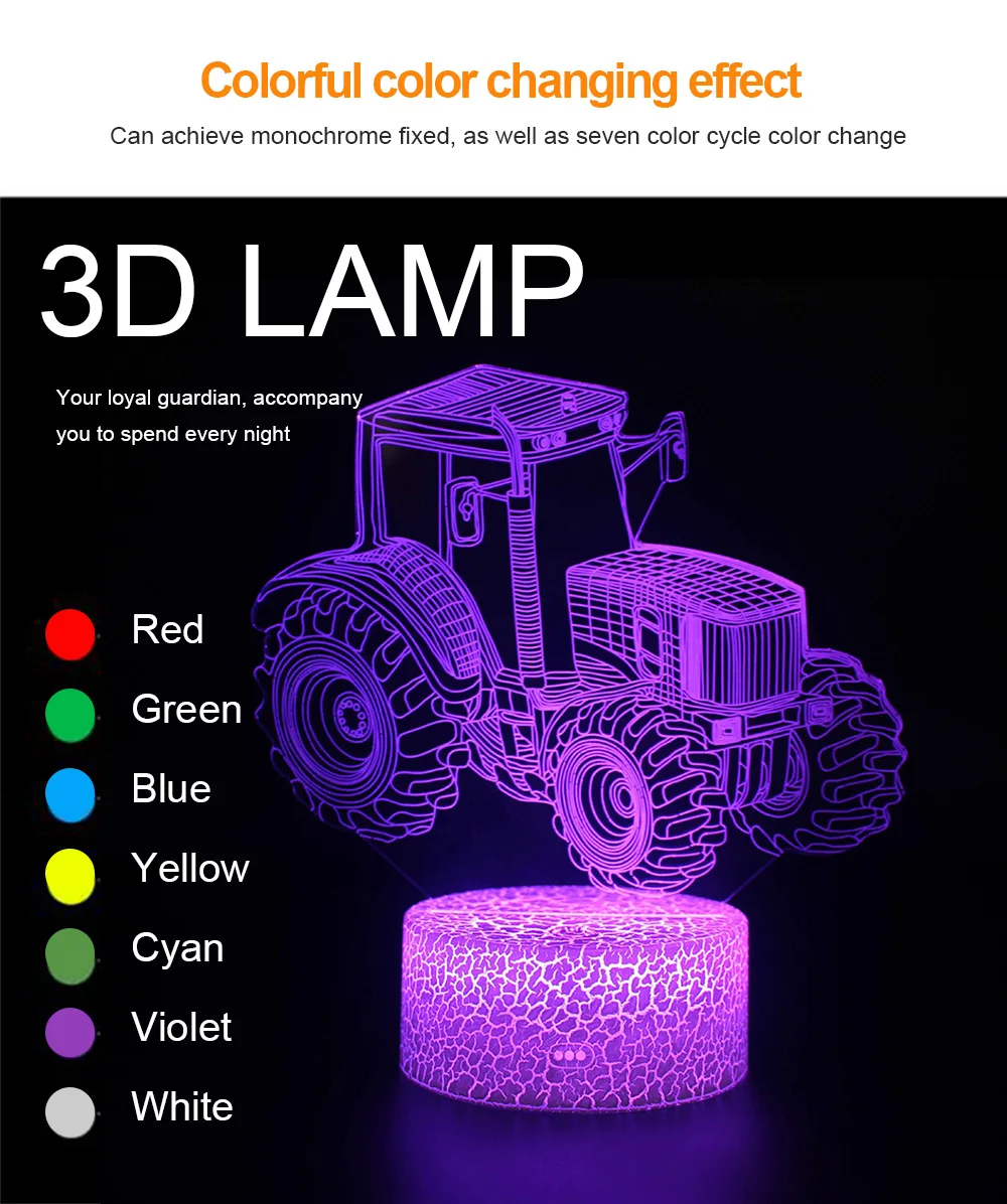 Автомобильный гоночный трактор седан, 3d иллюзионный светильник, ночная лампа для спальни, Usb-светильник, украшение для подростковой комнаты, неоновая вывеска на день рождения, подключение