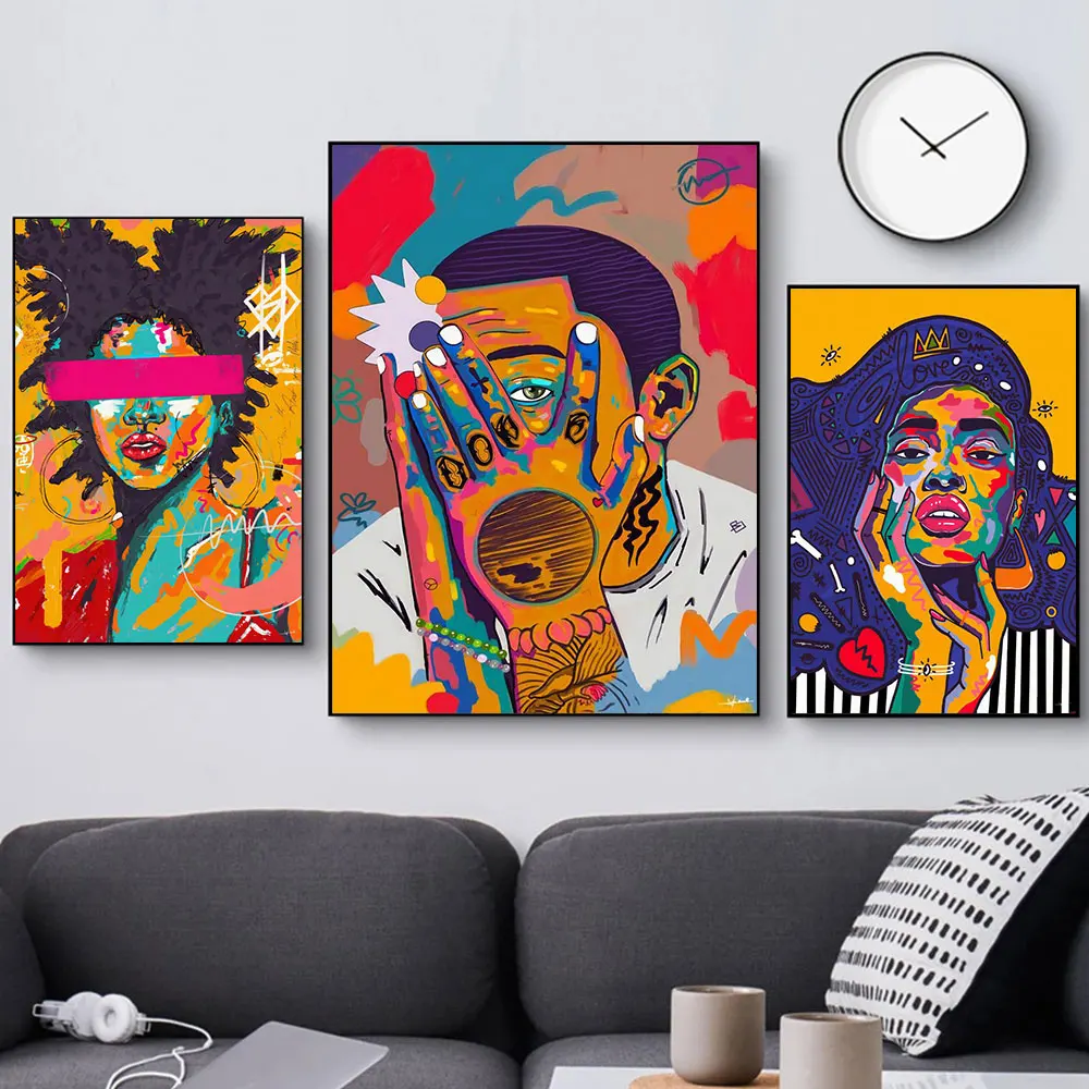 Цветные граффити, искусство, мальчик, девочка, комиксы, модные HD плакаты, современные красивые принты, скандинавский декор, женские фотографии