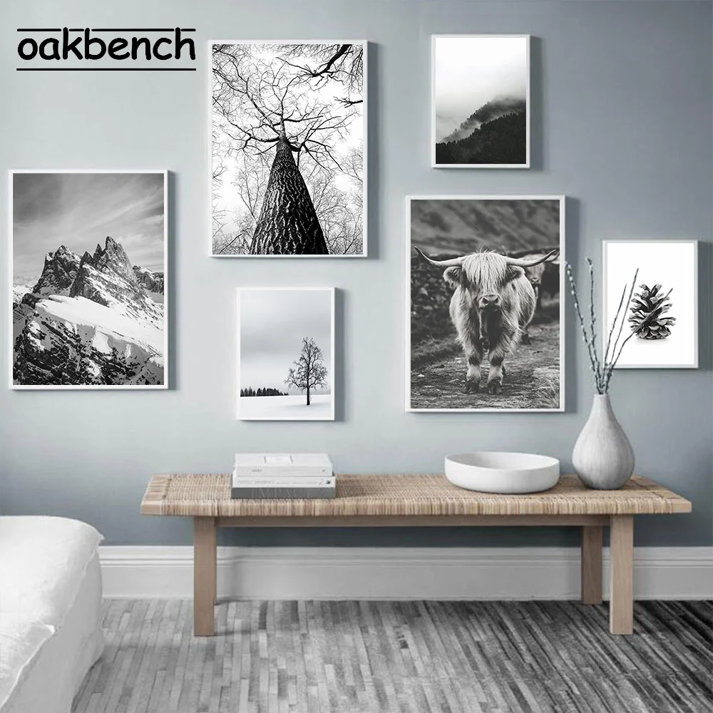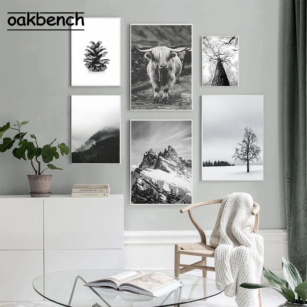 Скандинавский лес Снежный пейзаж настенная Картина на холсте постер...
