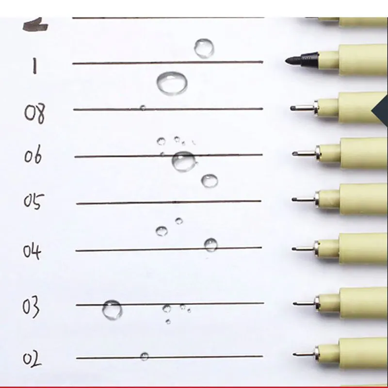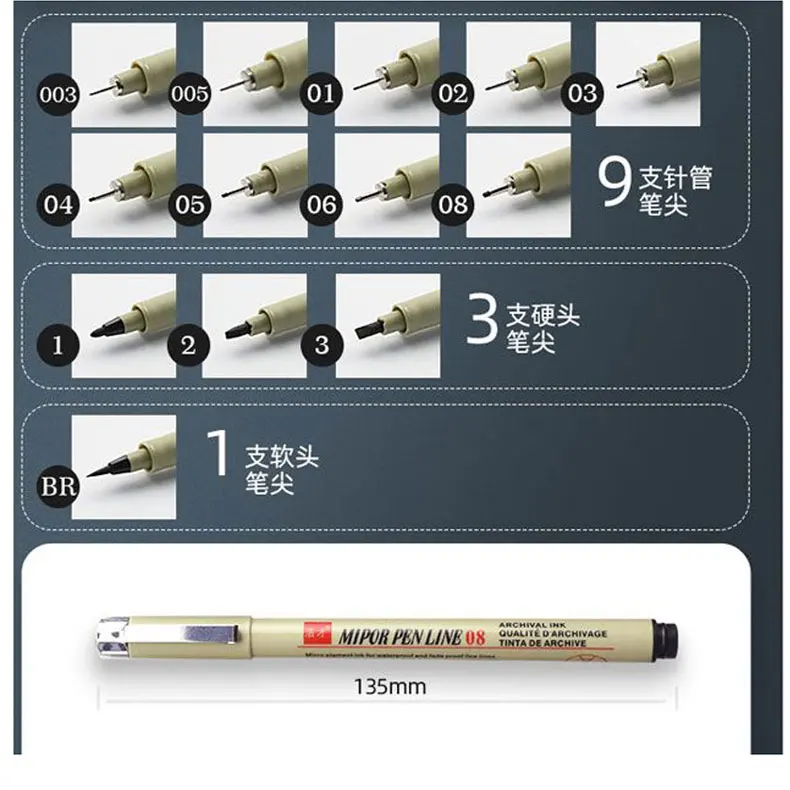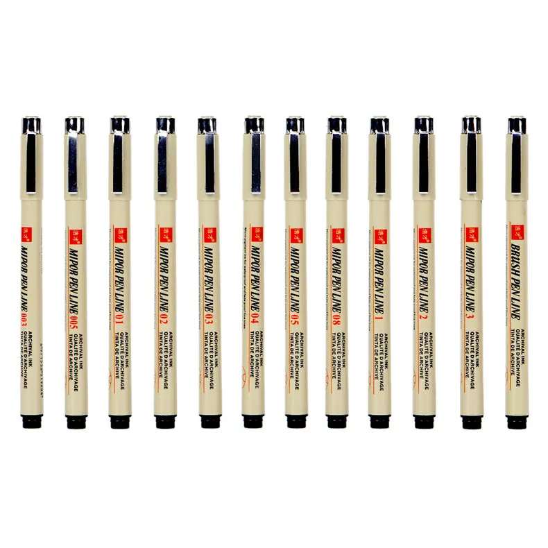Ручка-маркер Pigma, 13 шт., микрон, 003, 005, 01, 02, 03, 04, 05, 08, 1, 2, 3, BR кисть, разные кончики, черный Fineliner ручка для эскизов