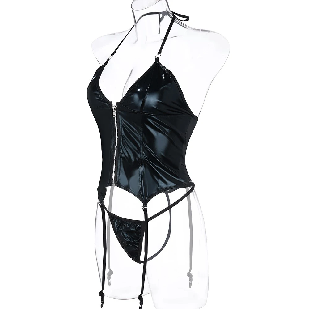 Женское сексуальное нижнее белье, эротическое белье, костюмы, сексуальное платье для секса, кожаный на молнии, подвязки, Порно корсет, женская одежда, комплект для косплея