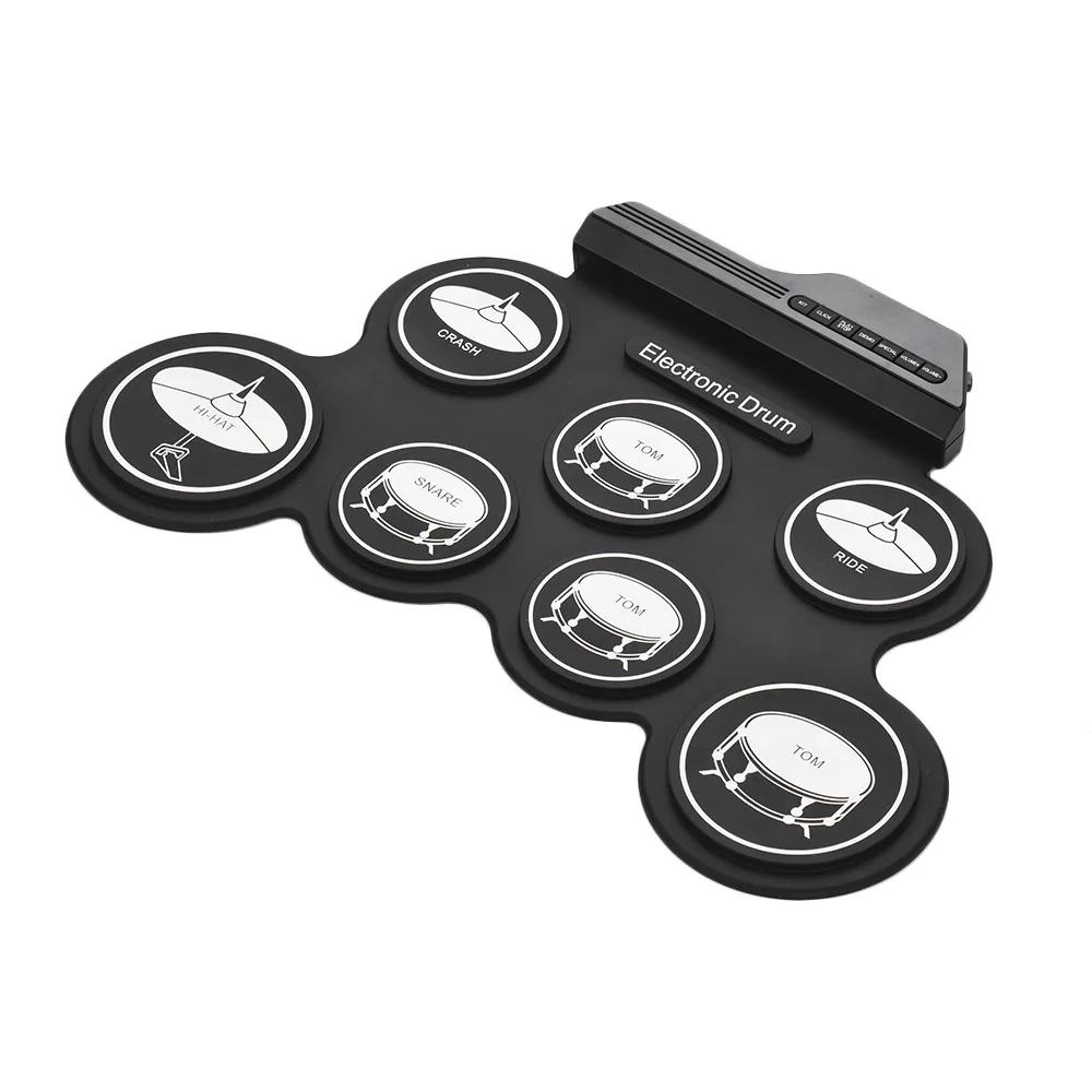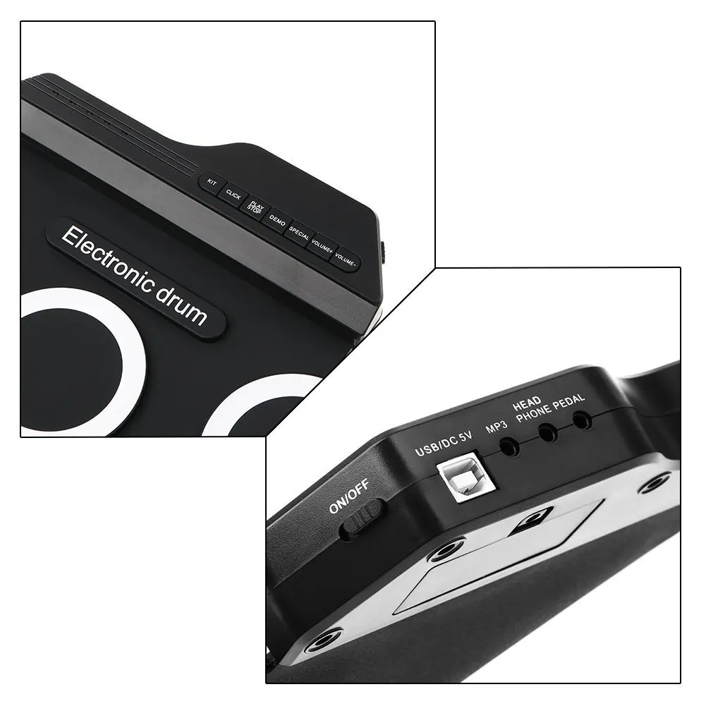 Характеристики:Цвет: черный + белый/черный + зеленый (опционально)Материал: силикон + пластикБарабанный набор тонов: POP, Rock, Latin, Electro, PercussionДемонстрационные песни: Heavy Rock, Funk, Latin, Samba, Cha-Cha, Swing Hi-Hat, Upbeat RockИсточник питания: USB кабель (входит в комплект) или 2 * батарейки типа "ААА" (не входит в комплект)Товар Размеры: 43*28*2,7 см/16,9*11 * 1.1inВес изделия: 455 г/16 унцийПосылка:43*15*7 смПосылка Вес: 1110g / 2.4lbs