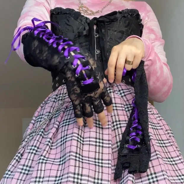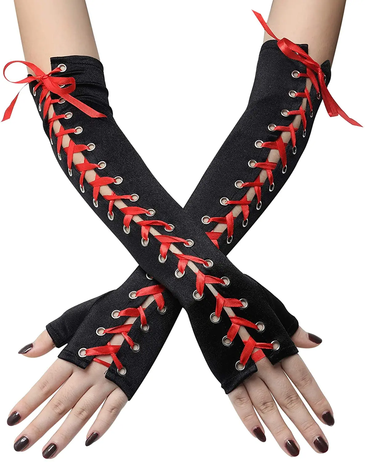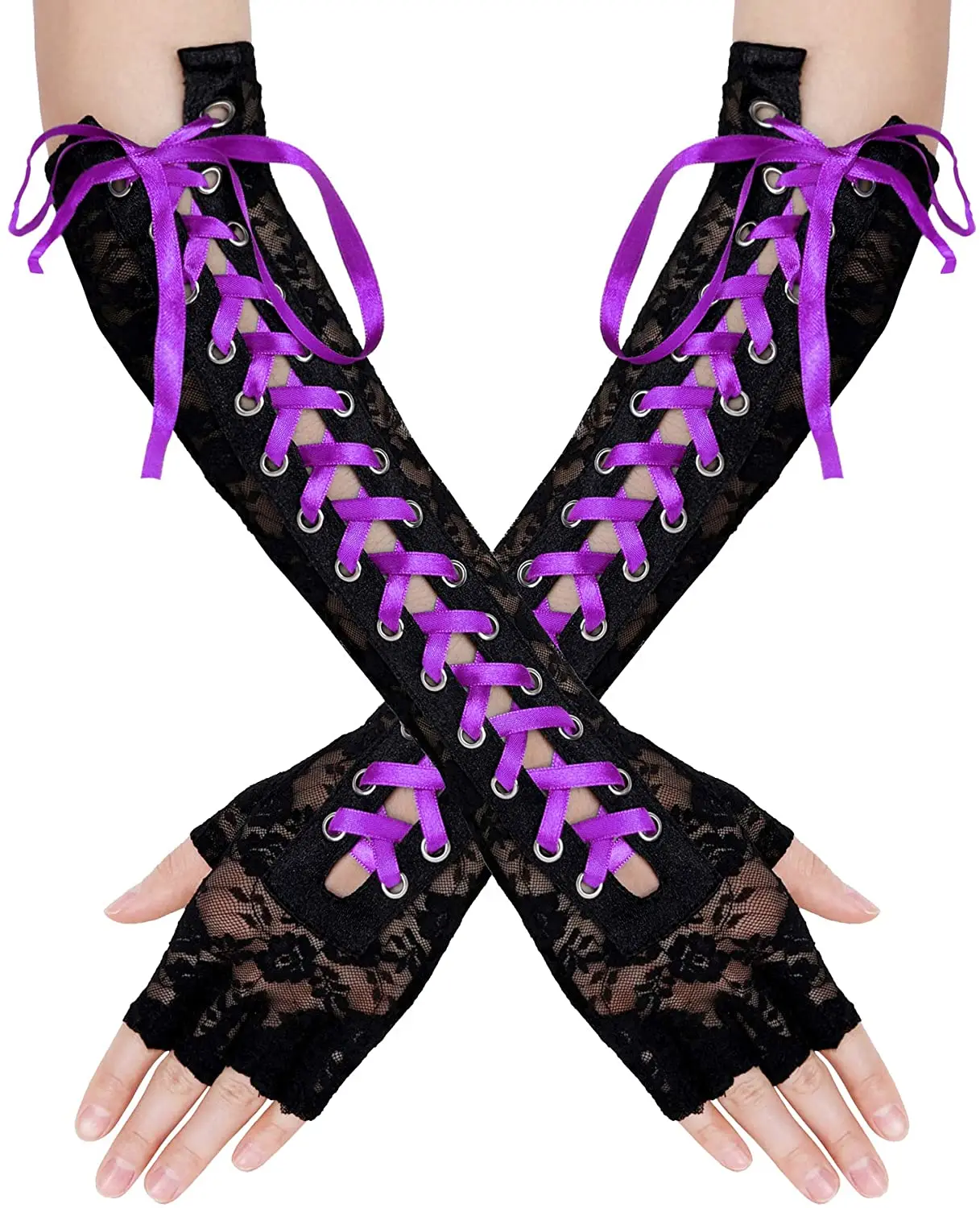 Женские сексуальные перчатки до локтя в стиле панк без пальцев Goth Black Misa Amane аксессуары для косплея сетчатые кружевные перчатки для вечеринки