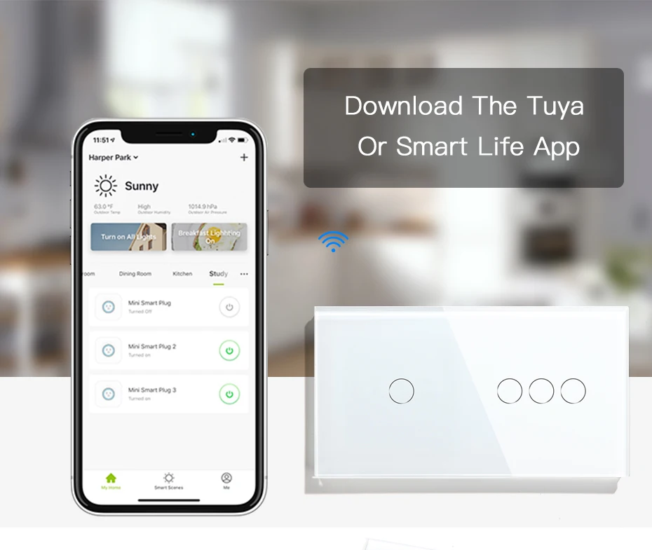 Мультиуправление: переключатели wifi имеют 1/2/направлений и могут управлять светильник том из четырех разных мест (максимум 4 направления).
