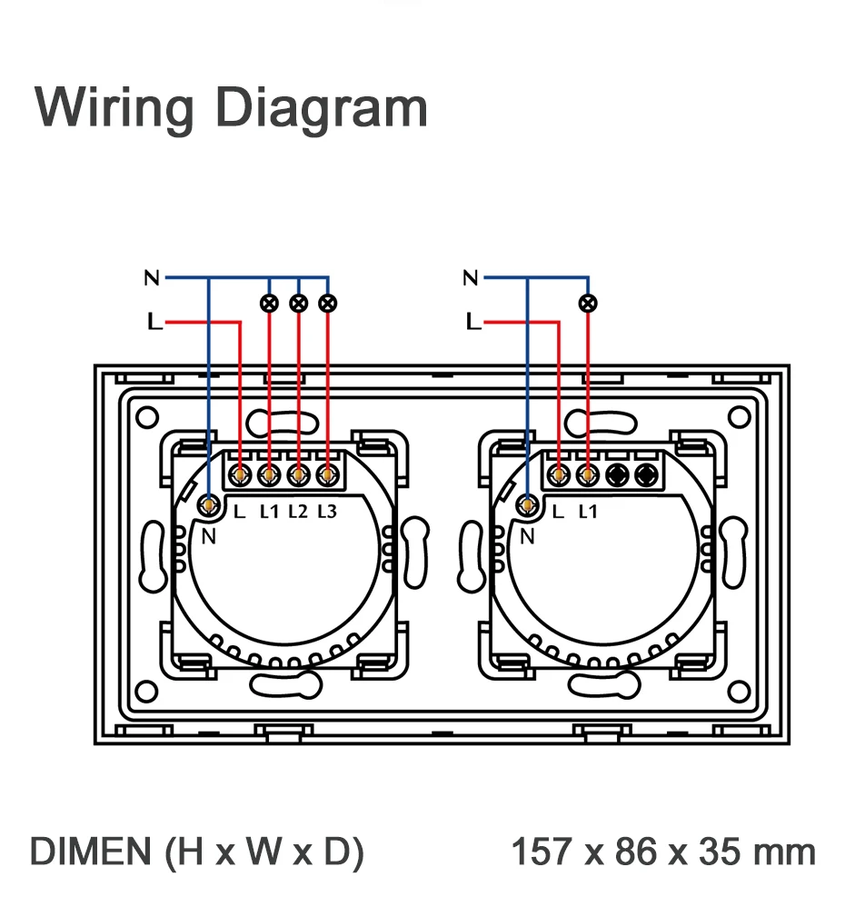О:Синяя подсветка будет гореть, когда проводка будет успешной. Позволяет четко видеть наш сенсорный выключатель в темноте.