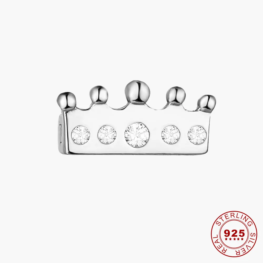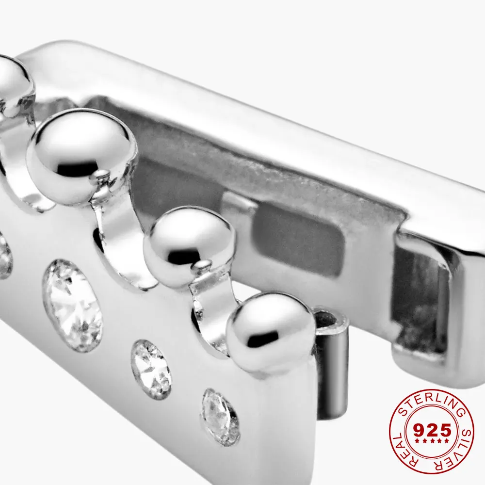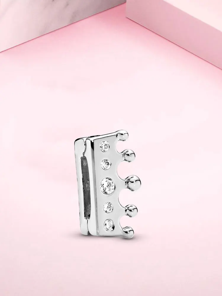 Стерлингового серебра 925 тонкий прозрачный CZ Корона зажим шарма Подходит для оригинальный отражение браслет Для женщин сетчатый Браслет часы ремень