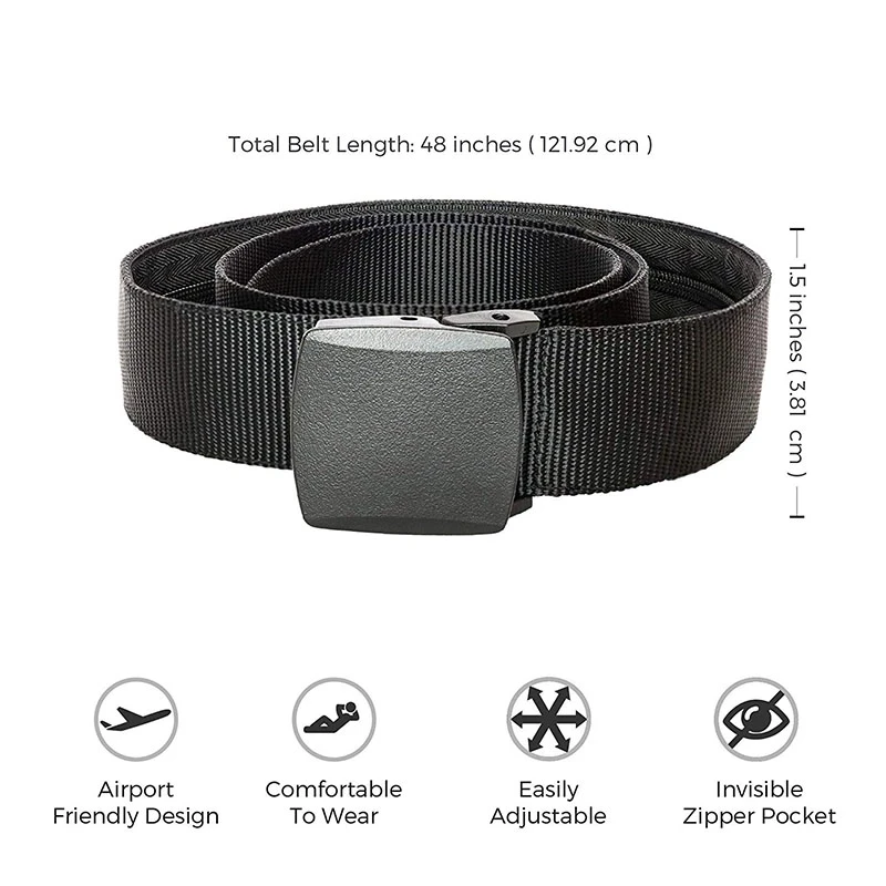 Ремень, скрытая сумка для денег, потайная полая коробка, портативный дорожный скрытый ремень для ключей, безопасный ремень, водонепроницаемый ремень 120 см Особенности: 1. Скрыть деньги во время путешествия, чтобы предотвратить воров 2. Это обычный ремень с карманом на молнии для шкафа. 3. Вы можете безопасно скрывать наличные деньги, монеты, билеты или другие мелкие драгоценные предметы. Длина: 119 см/46,8 дюйма Материал: нейлон + пластик Посылка включает в себя: 1 ремень для денег