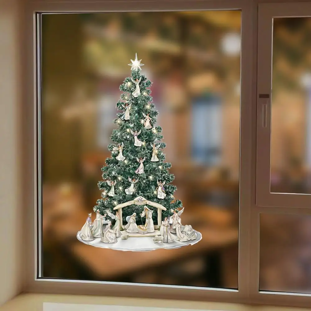 Настенная Наклейка, наклейка на окно, домашний декор, Рождественская декоративная наклейка из ПВХ с Иисусом, крестом Санта-Клаусом, рождественской елкой, наклейка на окно