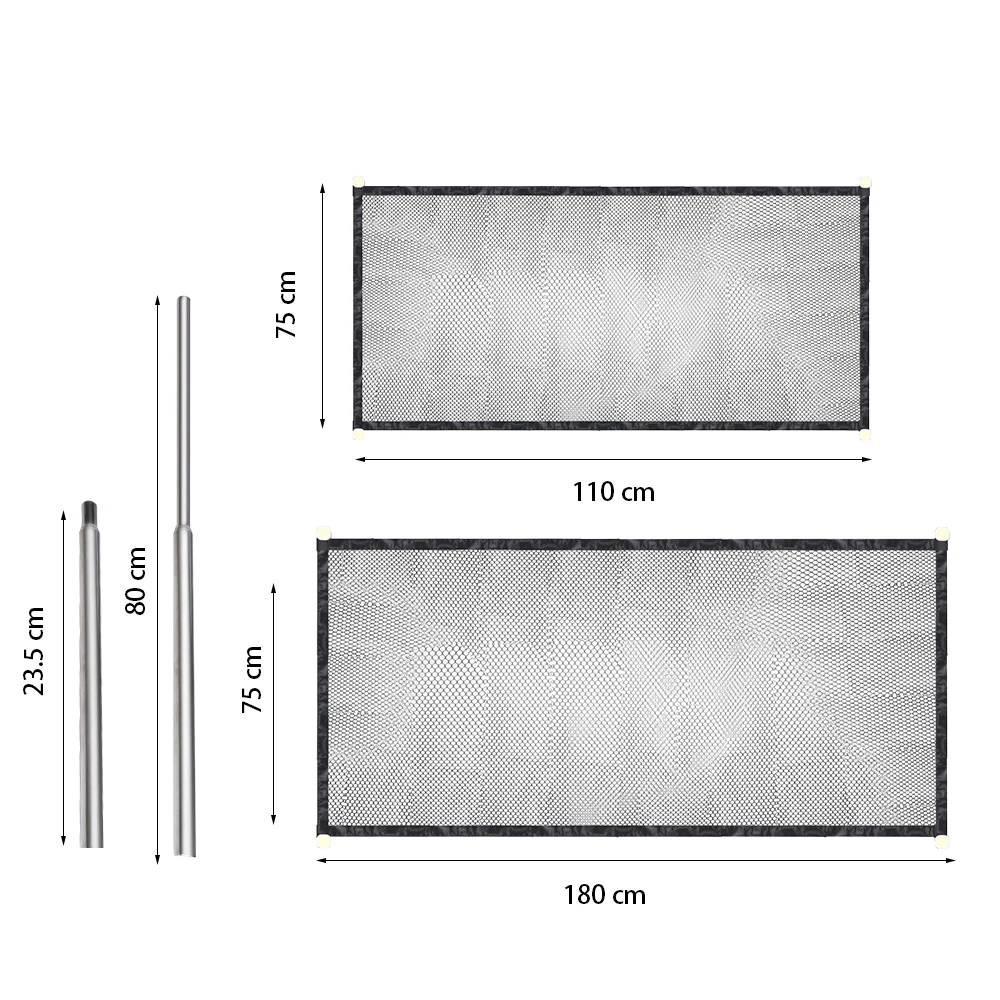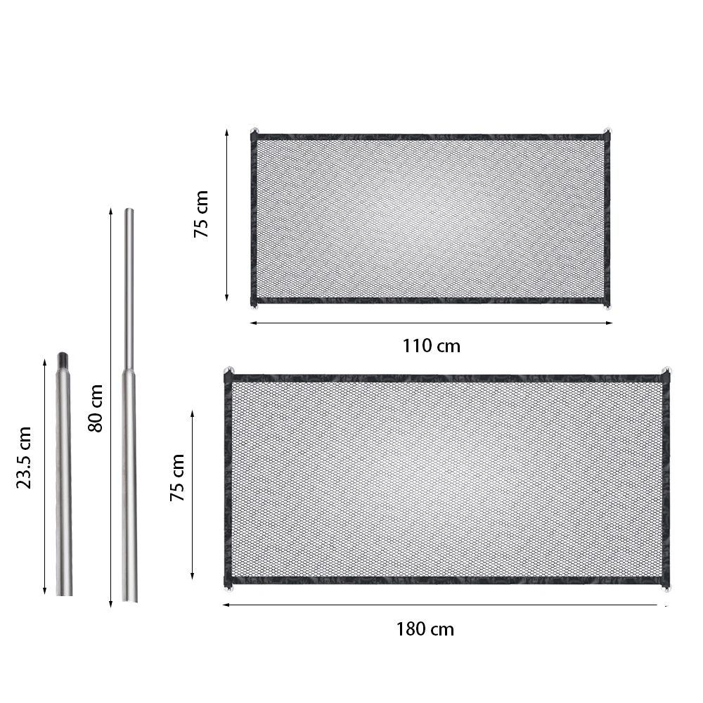 1. Защитный кожух для домашних животных идеально подходит для дверных проемов, между стенами или лестницами, в помещении и на открытом воздухе2. Изготовлен из прочной частично прозрачной тканой сетчатой ткани, чтобы выдержать плохое обращение с домашними животными3. Уникальный тканый барьер, который легко убирается полностью или частично быстро проходит4. Полностью собран для немедленного использования. Никаких инструментов не требуется, легкий и портативный, чтобы удовлетворить все ваши потребности на ходу5. Каждый комплект включает в себя один тканый тканевый, два Растягивающихся полюса и четыре липких крючкаСпецификация:Материал: нейлоновая сетка + трубка из нержавеющей сталиРазмер:Сетка: 180*75 см/110*75 смТрубы усадки: 23,5 смДлина трубы: 80 смВес:110*75 см: 320 г180*75 см: 350 г
