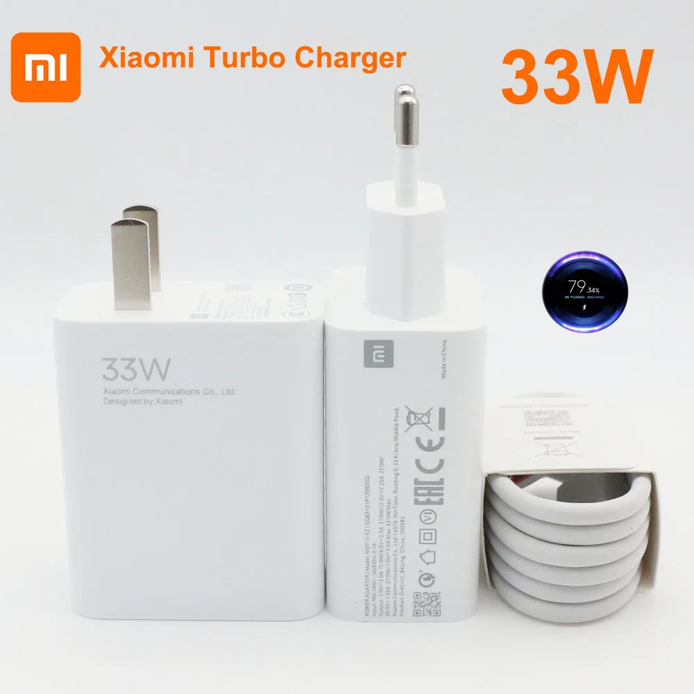 Оригинальное зарядное устройство Xiaomi 33 Вт, быстрое зарядное устройство для ЕС, США, кабель Type-C 6A для Mi 10, 9, 10T Lite, POCO X3, NFC, Redmi K40, Note 9, 10 Pro