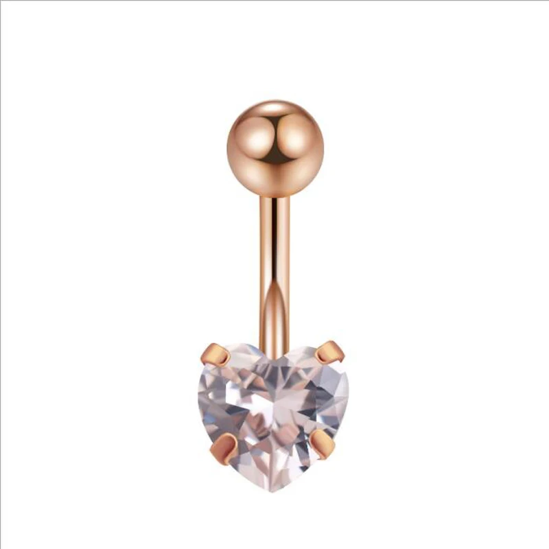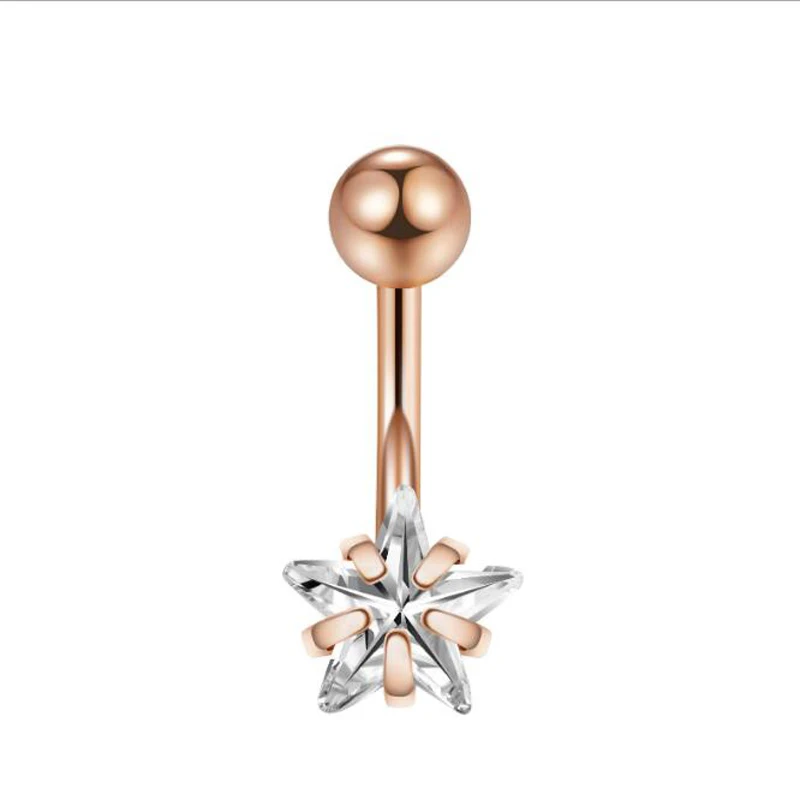 JINGLANG пирсинг пупка ногтей Нержавеющая сталь Розовое золото пупка кольцо пять звезд в форме сердца