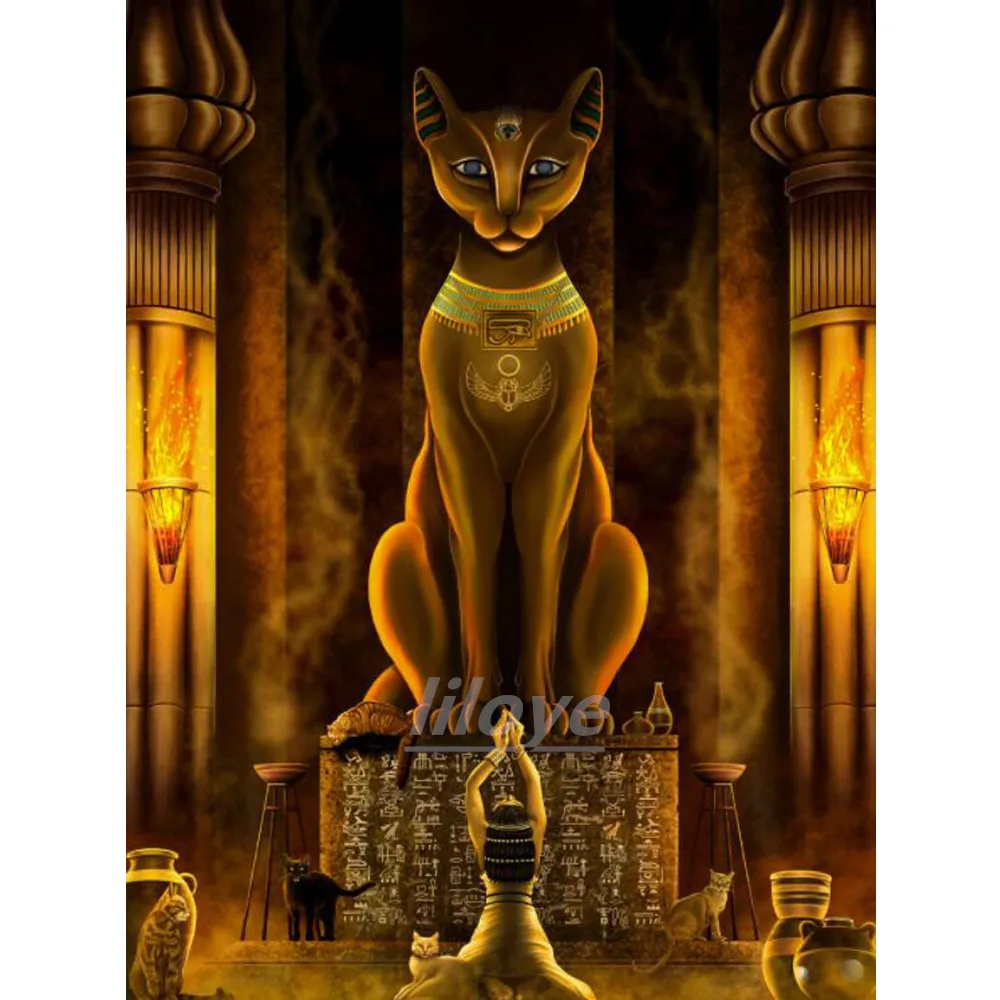Картина 5d "сделай сам", икона египетского фараона, картина из страз, вышивка, кошка, Бог, квадратная Круглая Мозаика, декор DF140