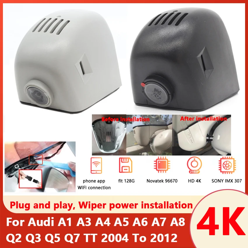 Скрытый Автомобильный видеорегистратор HD 4K с подключением к сети Wi-Fi, видеорегистратор с камерой для Audi A1 A3 A4 A5 A6 A7 A8 Q2 Q3 Q5 Q7 TT 2004 до 2012