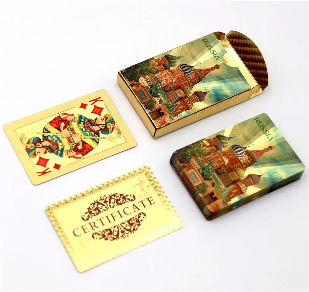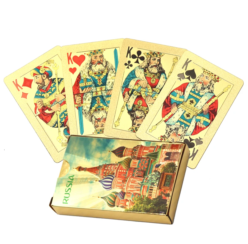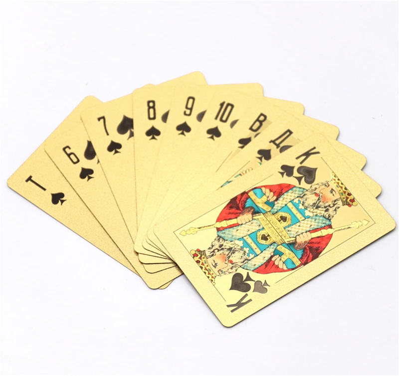 Золотые новые русские покерные 24K игральные карты из золотой фольги ПВХ пластиковые водонепроницаемые прочные покерные карты стандартные игровые карты