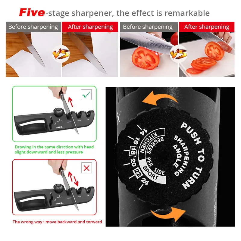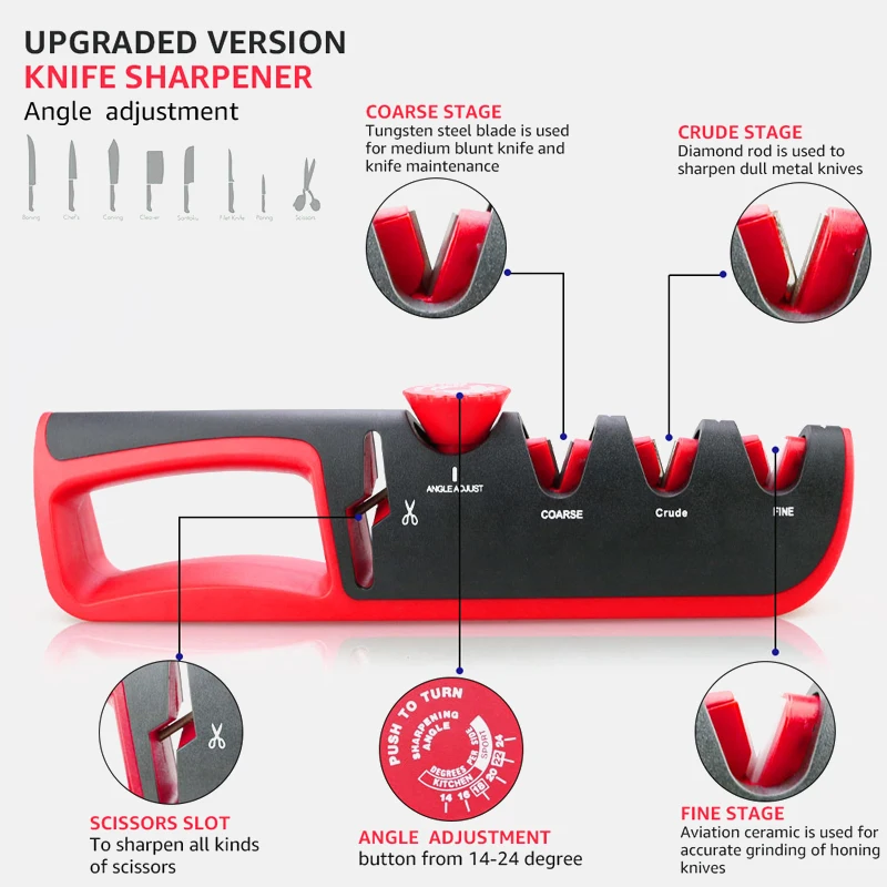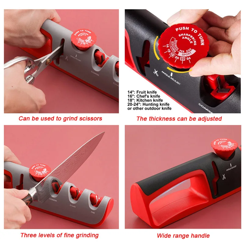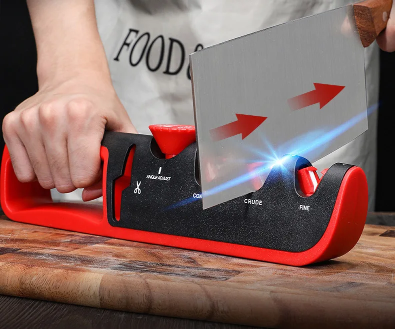 С 4 этапами, чтобы сделать нож острым, эта точилка для ножей работает на всех ножах и ножницах, точить Прямые ножи, охотничьи ножи и карманные ножи, нож для мясников, керамический нож, нож для поваров, нож для мясорубки, секаторы и многое другое.