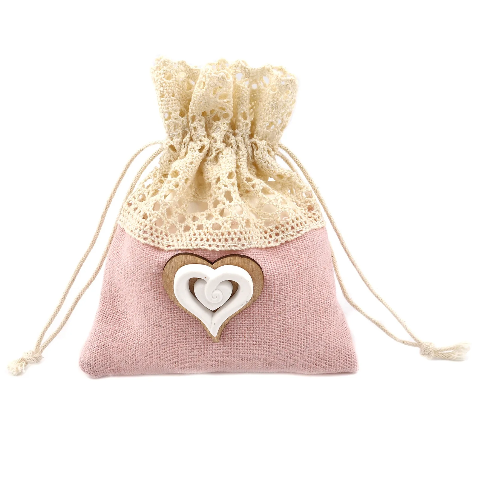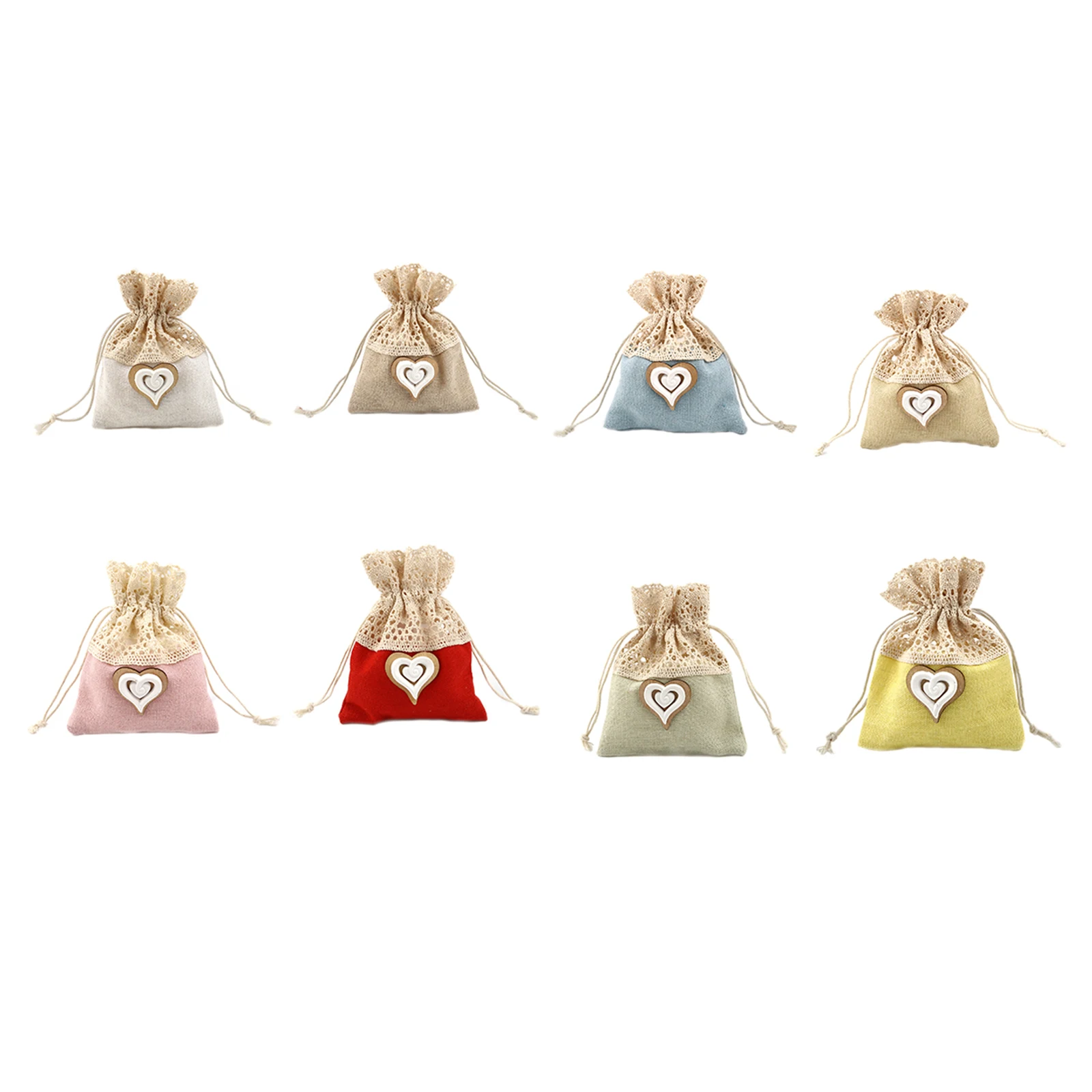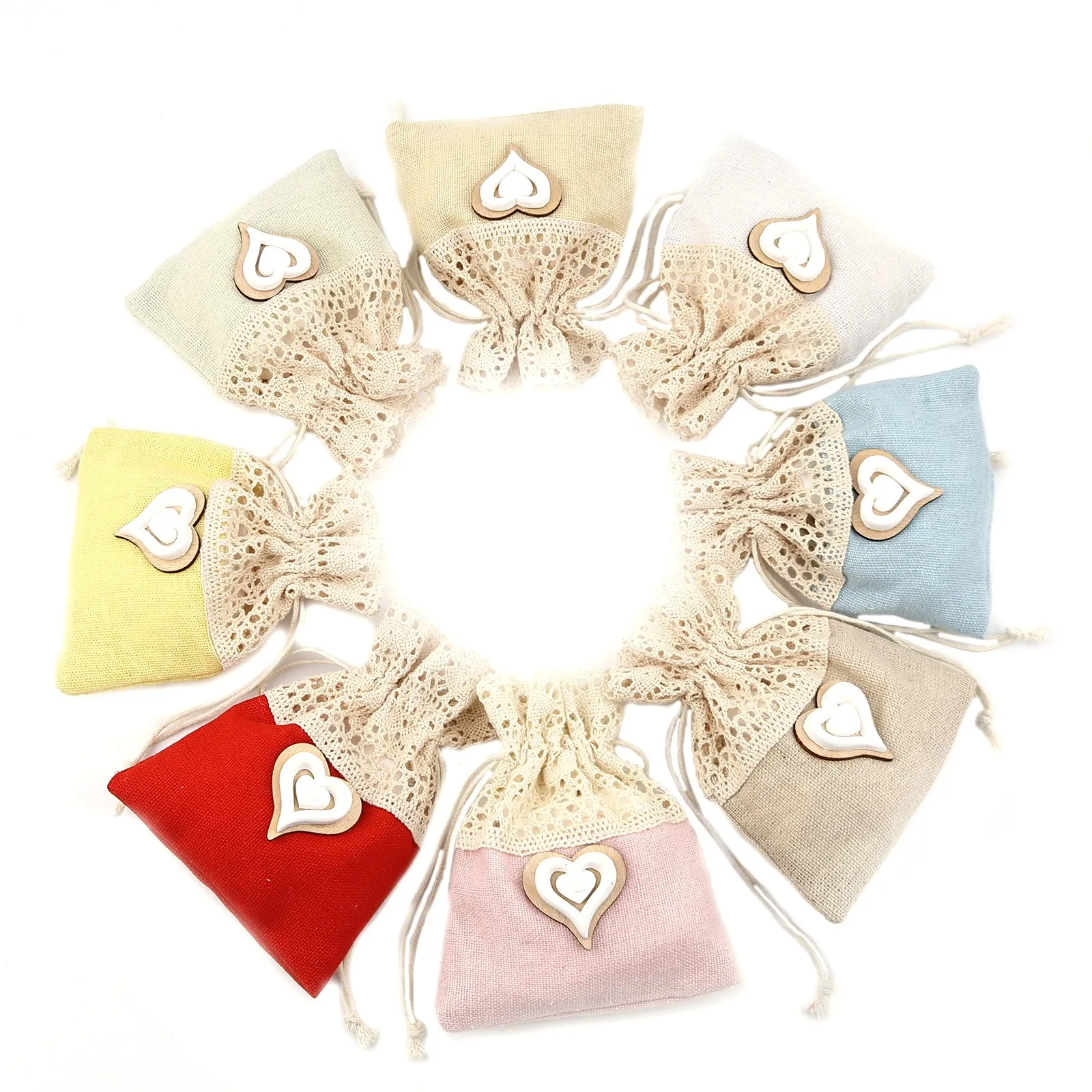 Тканевые мешочки на шнурке, прямоугольные, разноцветные, с сердечками, бисером, для упаковки ювелирных изделий, мешочки для конфет, свадебные мешочки, пакеты для подарков, 12 х10 см, 2 шт.
