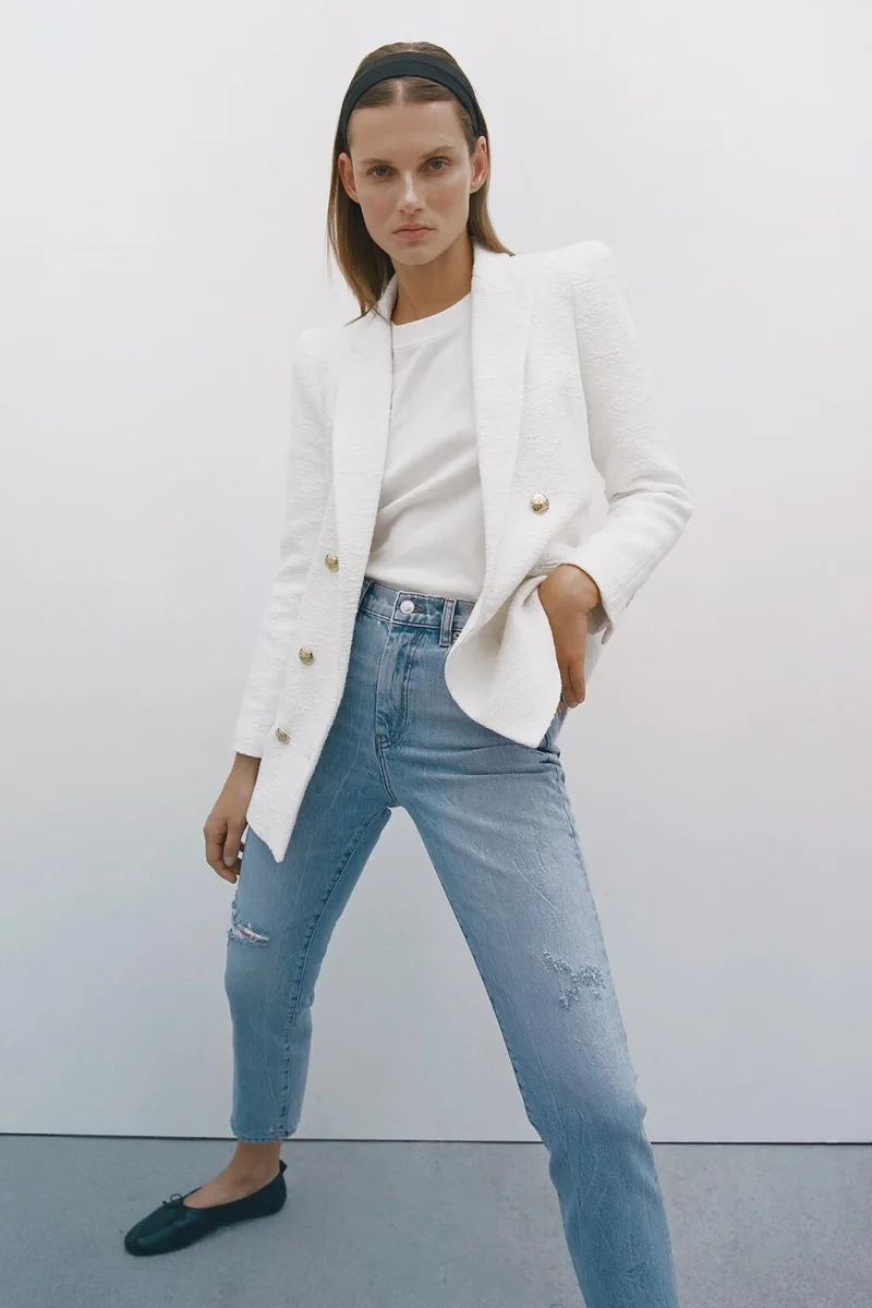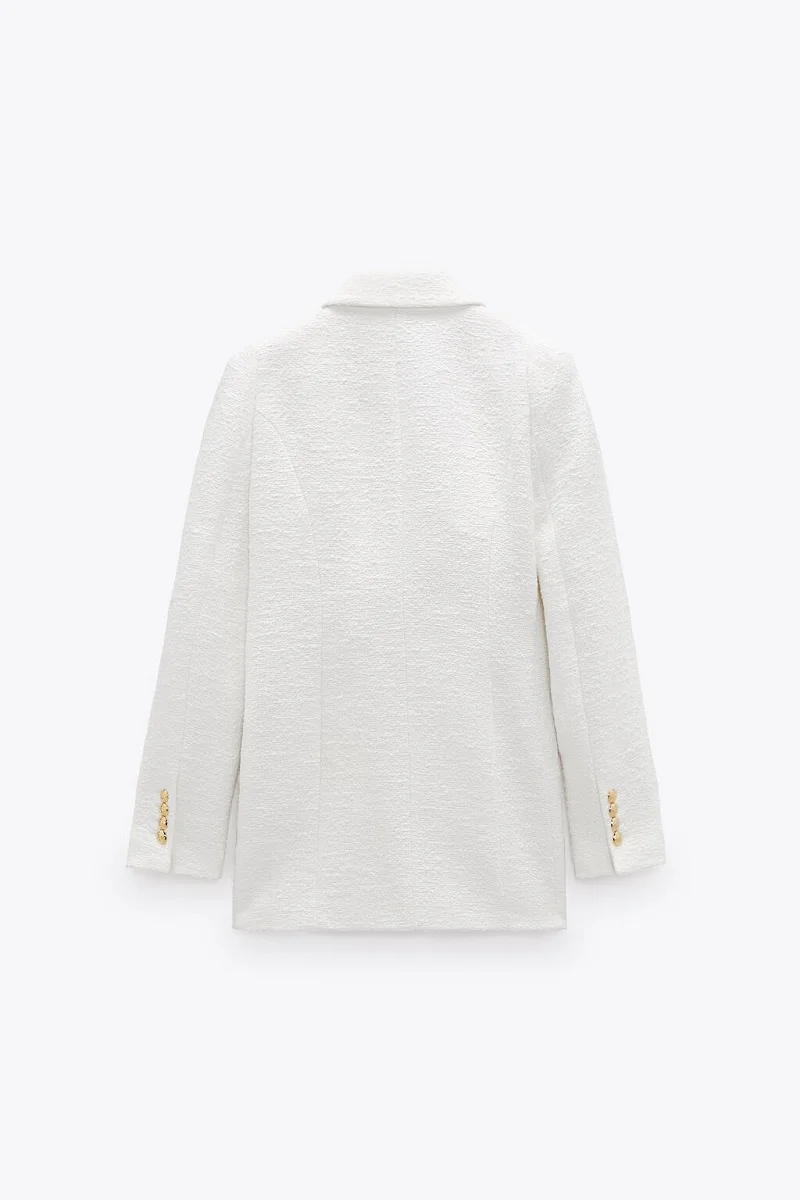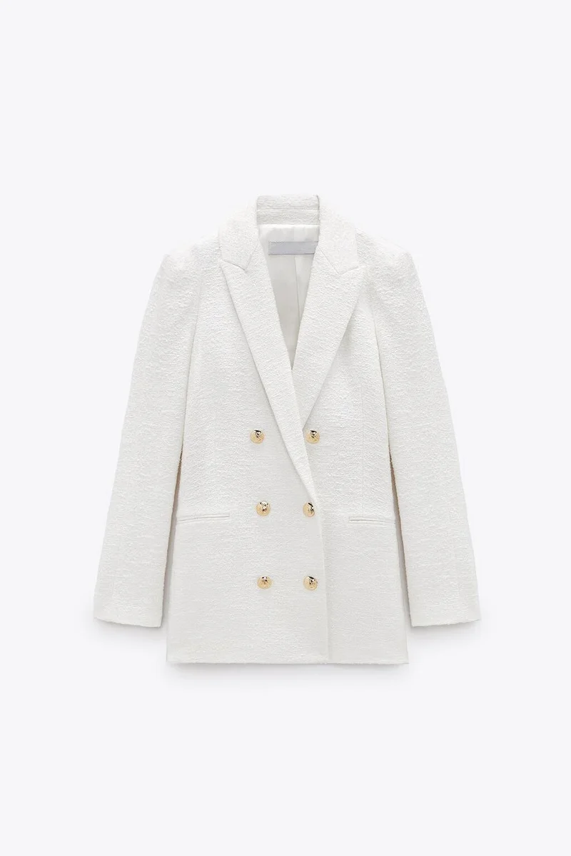 Новинка, весенне-осенний женский модный белый пиджак, шикарное офисное пальто с золотой пряжкой, женская элегантная верхняя одежда, женский пиджак