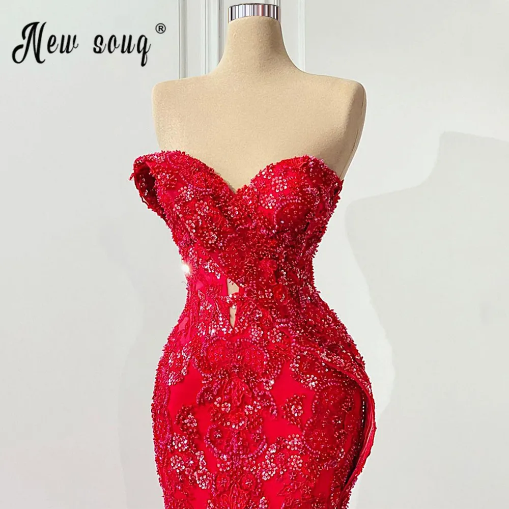 Красное милое вышитое бисером мусульманское вечернее платье Русалка свадебное платье для вечеринки Выпускные платья для невест 2021 Robe de mariee