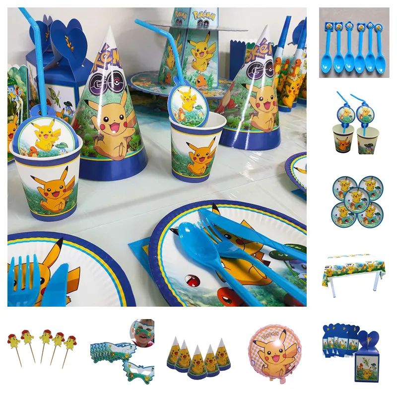 Одежда с изображением покемона Пикачу вечерние тема декоративные столовые принадлежности Салфетка под тарелку кружку Подарочный пакет скатерть на день рождения принадлежности рождественские украшения