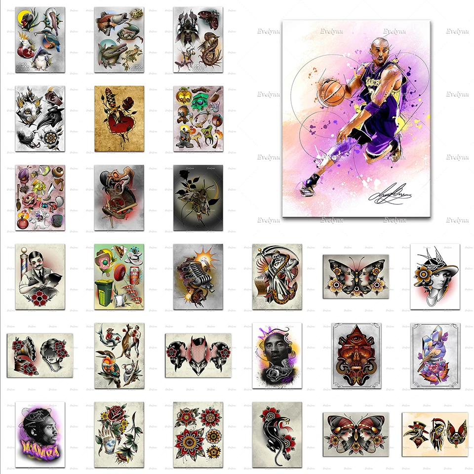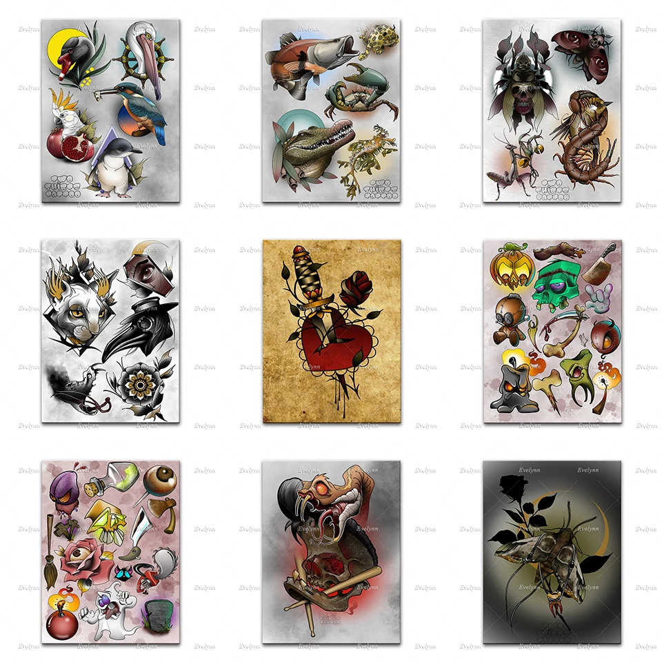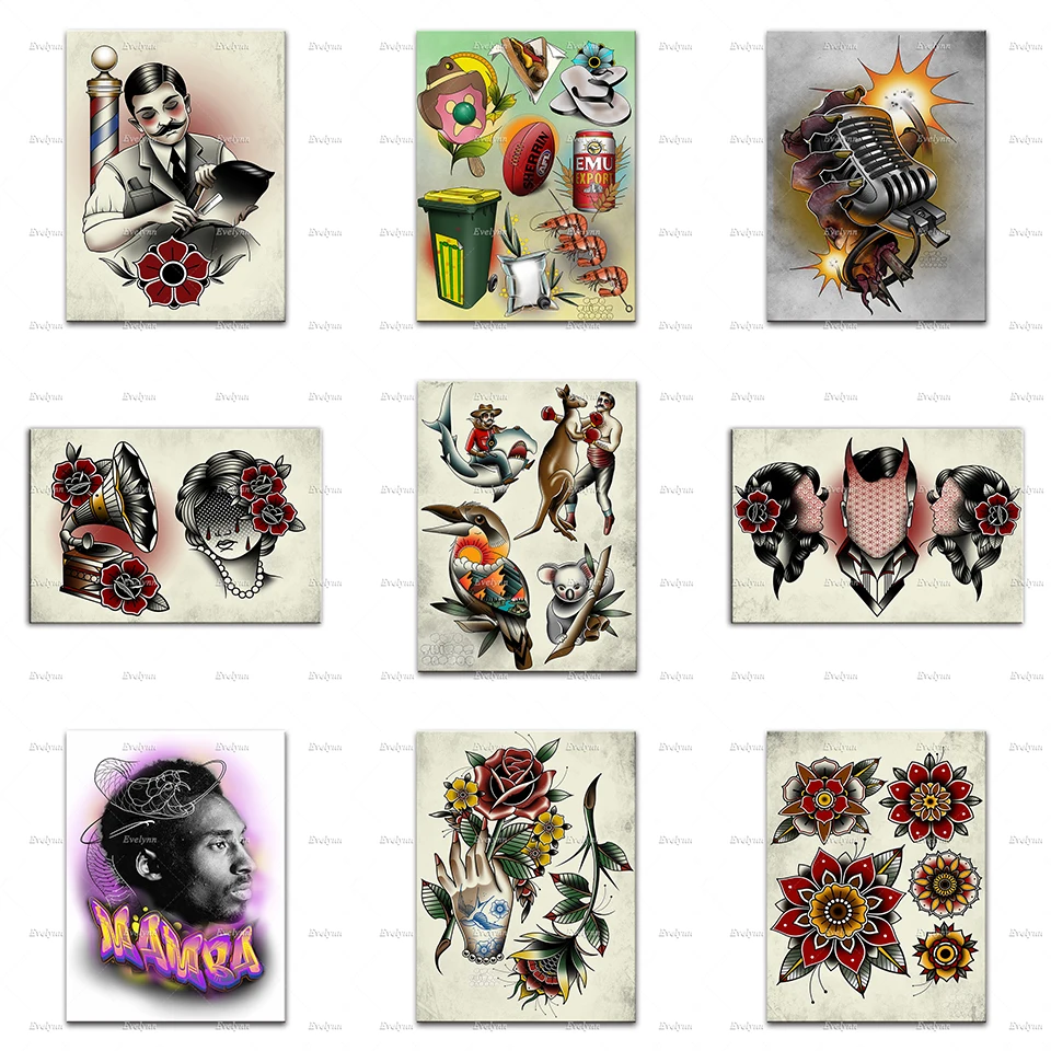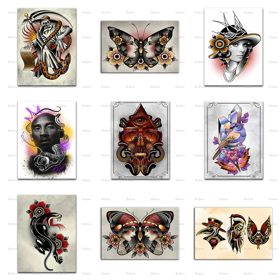Традиционный стиле татуировки Flash Плакаты Gypsy татуировки в австралийском стиле животного Хэллоуин жнец домашний декор картины на холсте PrintsGift
