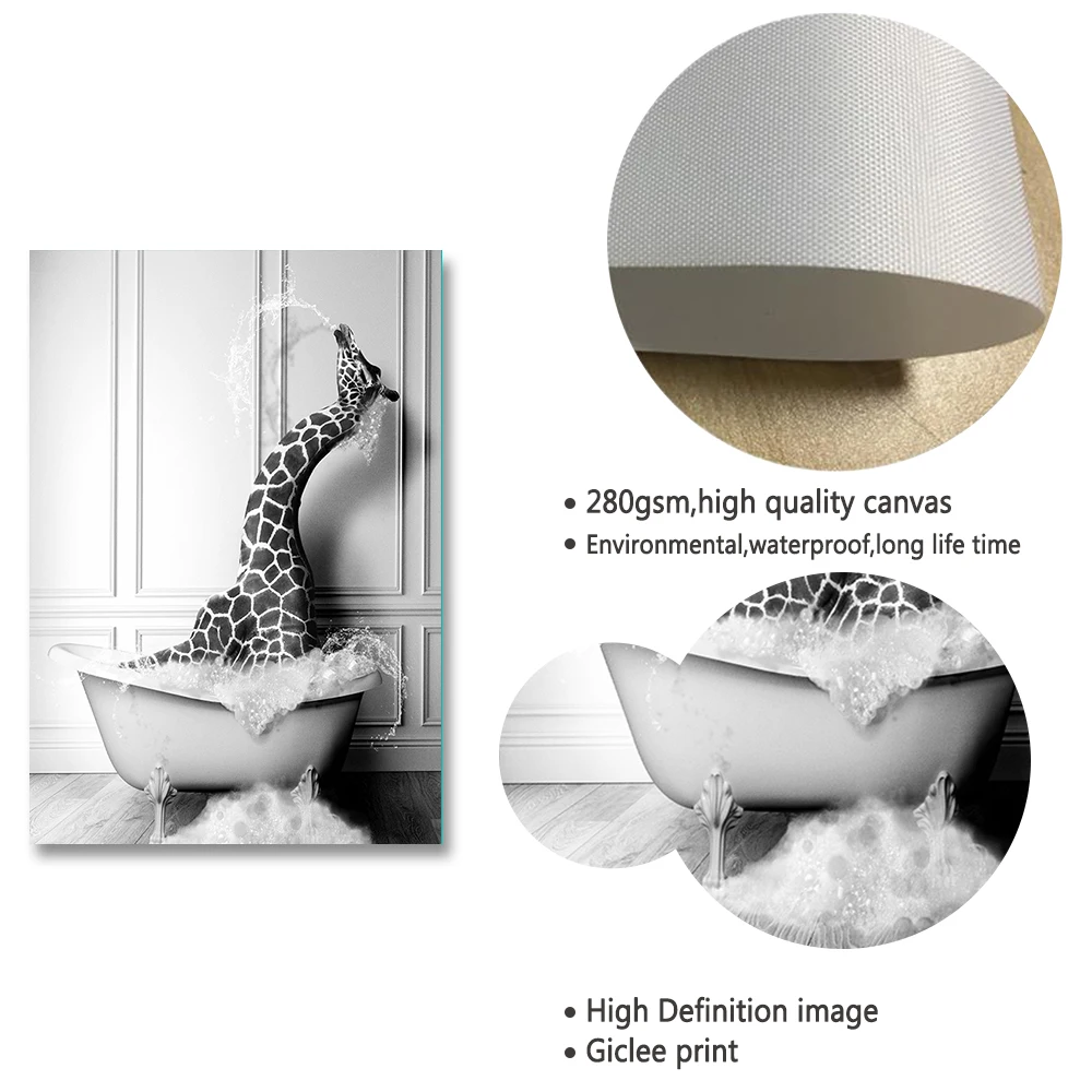 Черно-белая Картина на холсте, искусство на стену в ванную комнату, слон, жираф, Зебра, декоративные картины, домашний декор