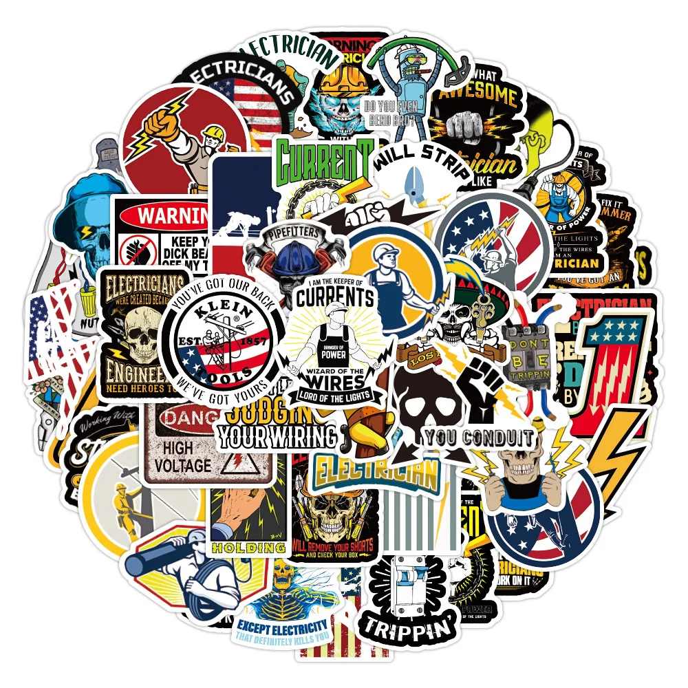 50 шт.лот сварочный шлем электрика, грязевые знаки, наклейки в эсте...