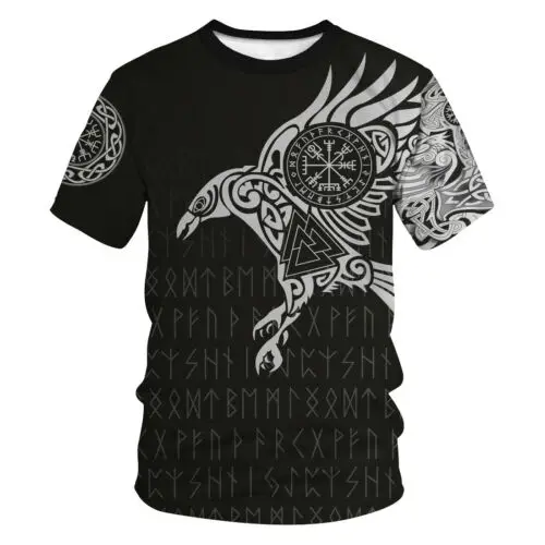 Новинка 2021, модная мужская футболка с 3D принтом викингов, татуир...