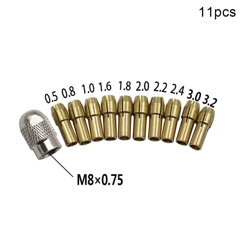 Новинка, 11 штук, латунные цанги, мини сверлильные патроны, включая 0,50,81,01,21,51,82,02,43,0 мм