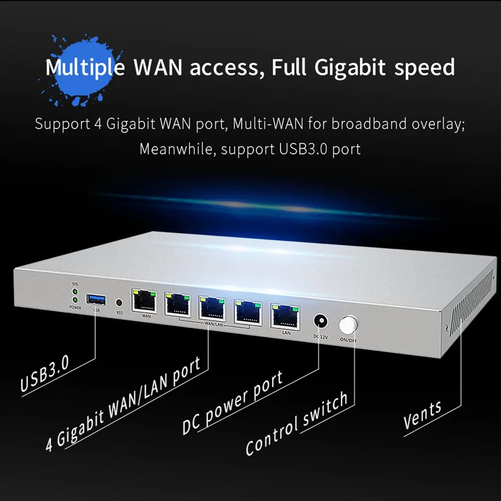 1. Поддержка 4 гигабитных портов WAN, мульти-WAN может реализовывать широкополосное наложение, устройство имеет полную гигабитную линейную скорость пересылки, а также поддерживает интерфейс s USB3.0.