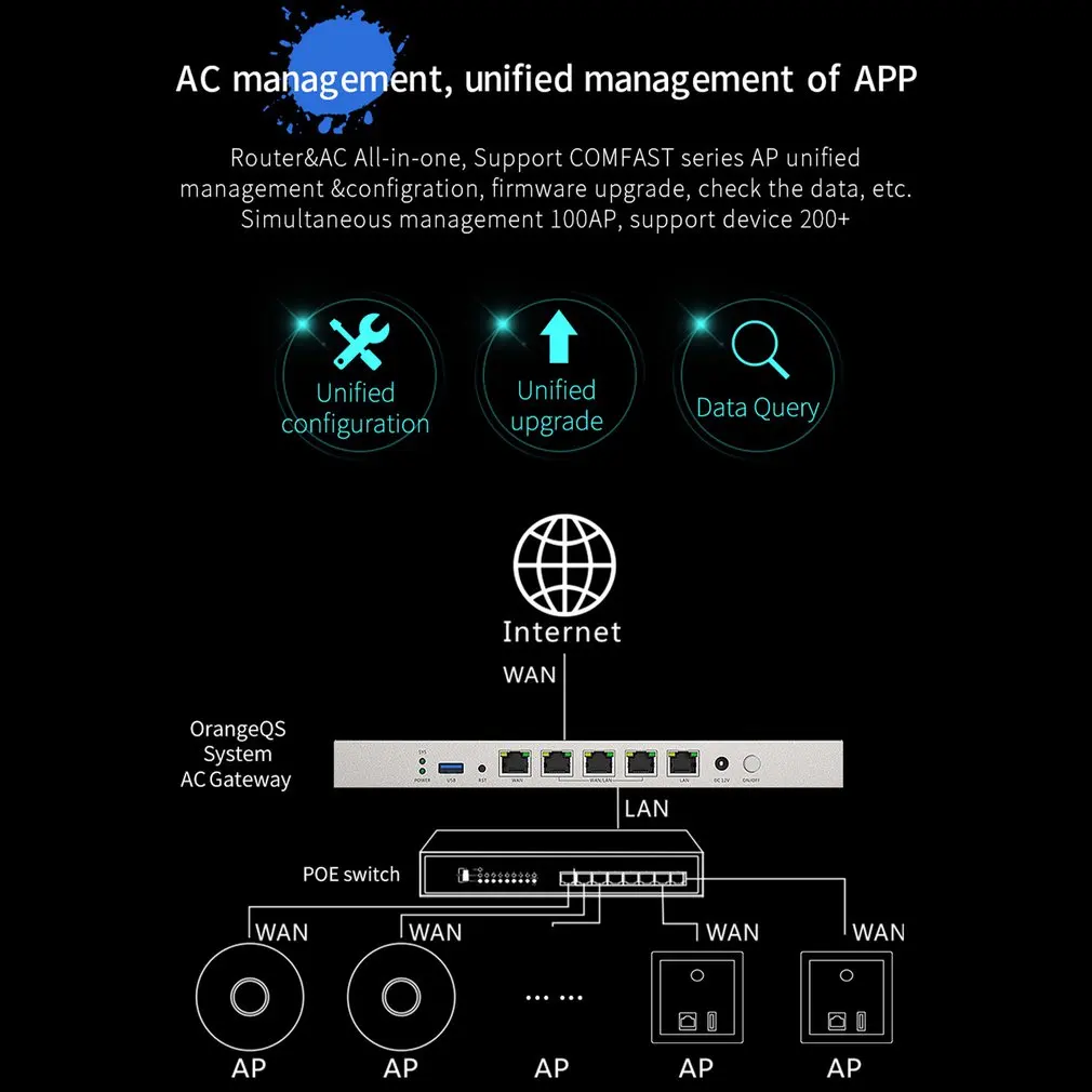 2. Маршрутизация и переменный ток объединены в один, поддержка унифицированного управления и конфигурации беспроводной связи, обновления, запроса данных и т. Д. Может управлять одновременно, с 200 машинами.