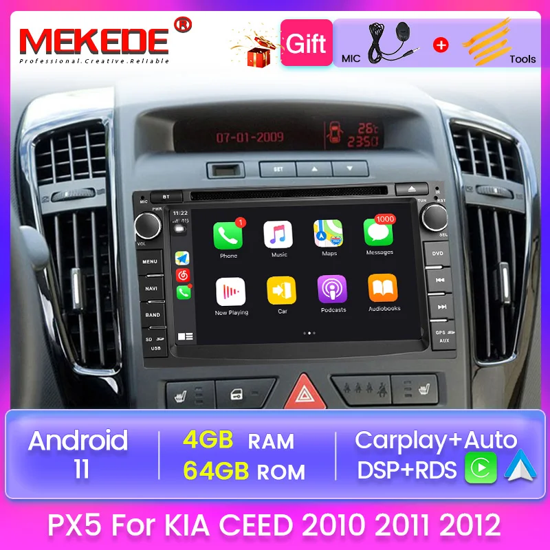 PX5 DSP RDS Android 11 4 Гб + 64 ГБ Автомобильный DVD мультимедийный плеер для Kia Ceed 2010 2011 2012 GPS навигация Авторадио Carplay Авто WIFI