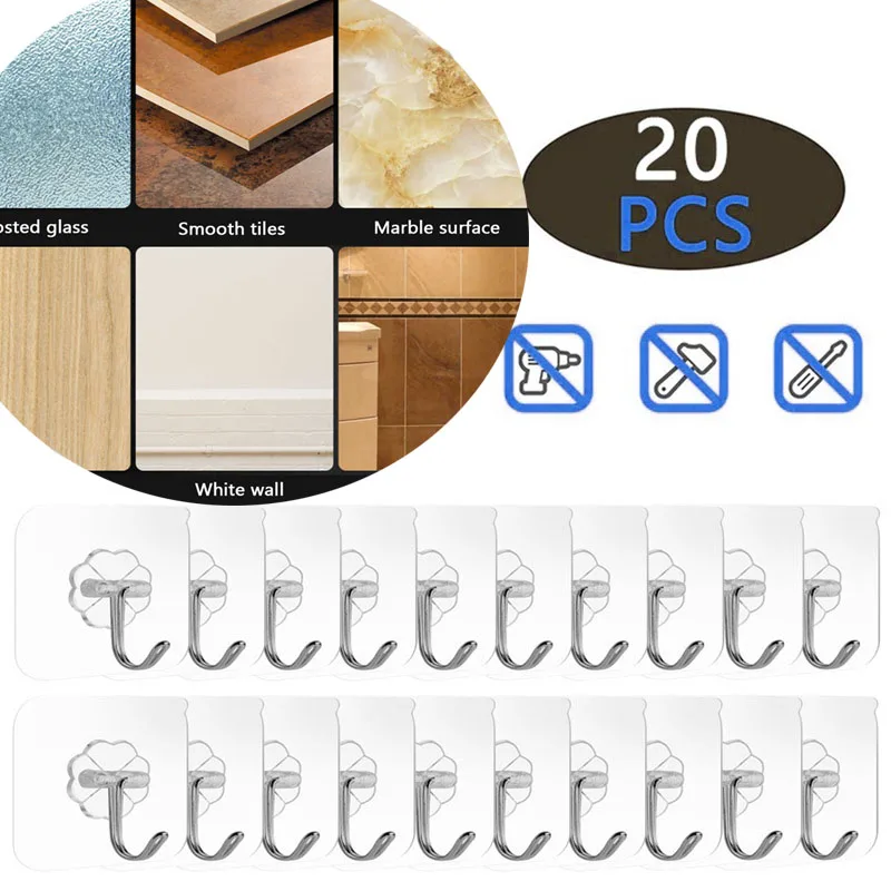 Клейкий настенный крючок для масок, 20 шт., Простой настенный держатель ключа Держатель для метлы, двери, вешалки для одежды, настенного хранения, силиконовые чашки Sution для кухни