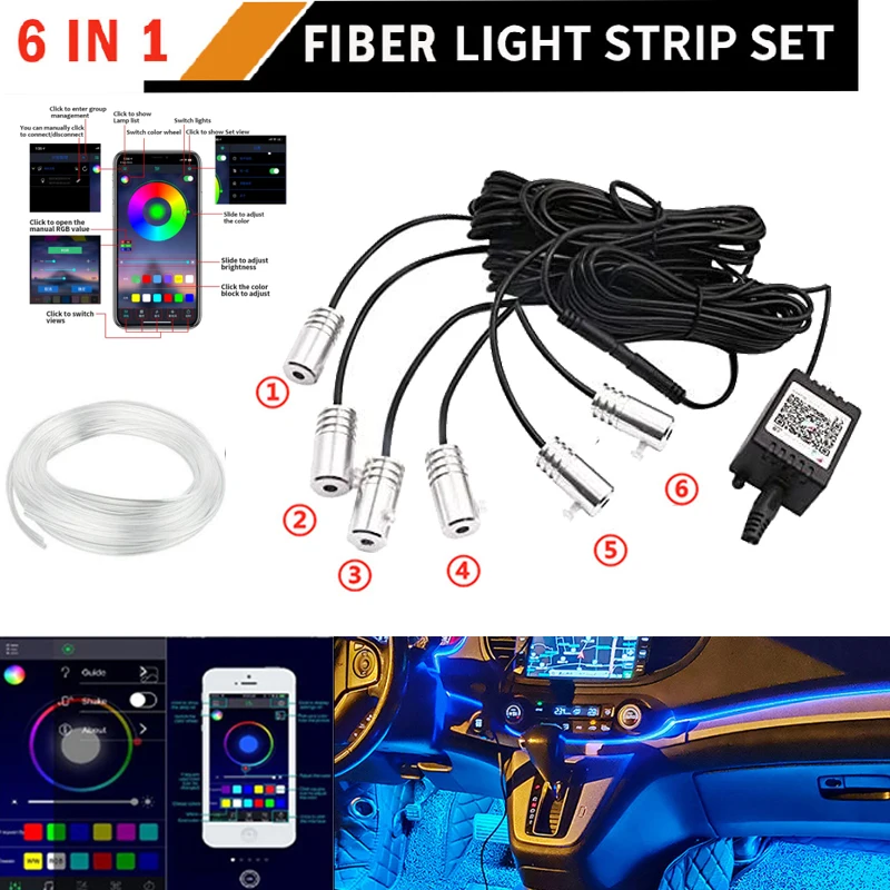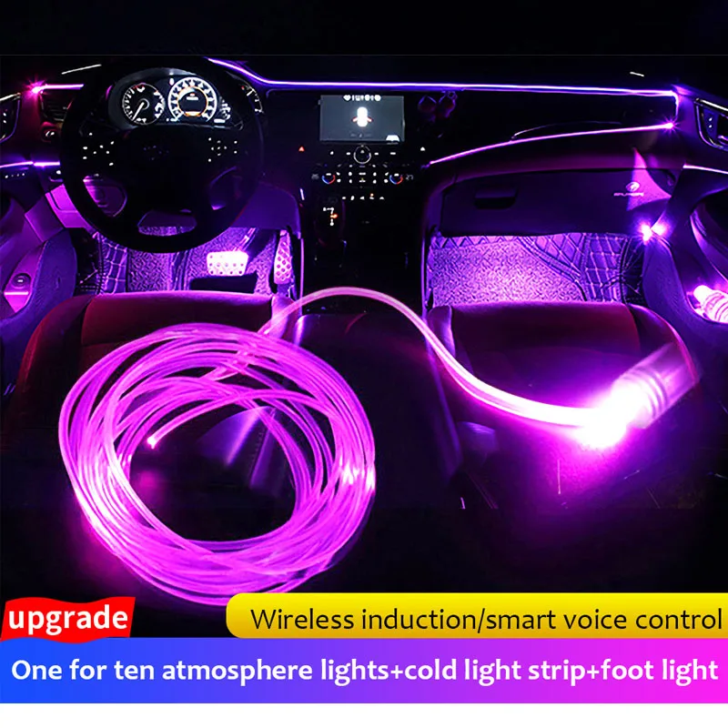 Универсальный RGB светодиодный атмосферный автомобильный светильник, декоративная неоновая лампа для салона, оптоволоконная полоса, с управлением через приложение, музыка сделай сам, 12 В постоянного тока