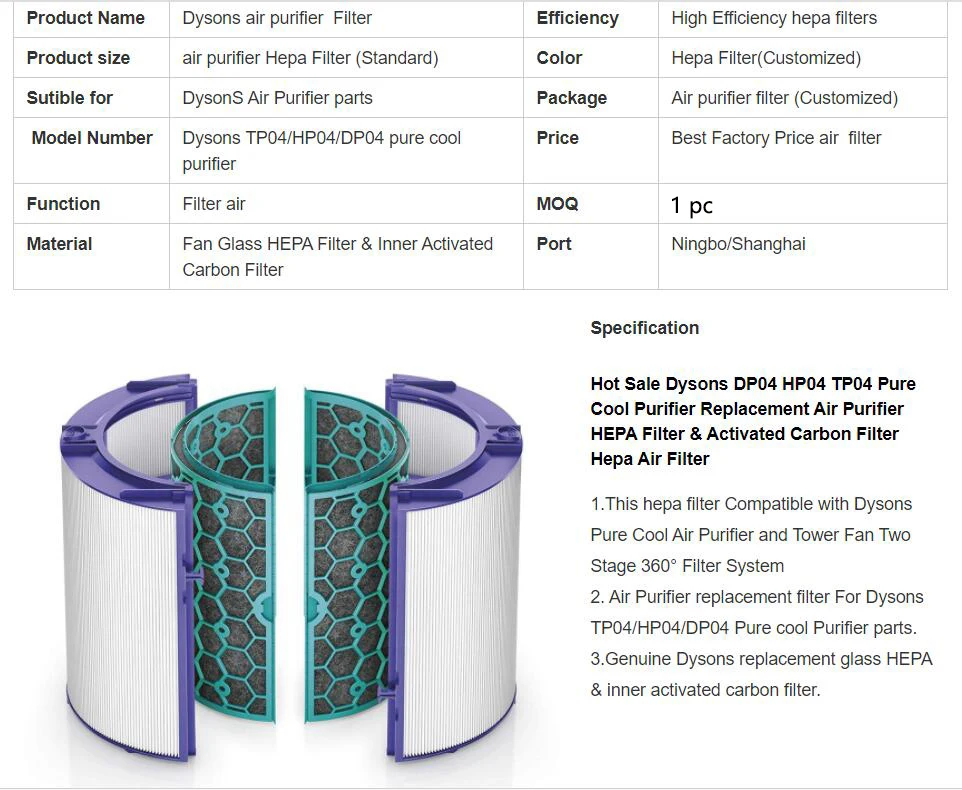 Горячая Распродажа, Dysons DP04 HP04 TP04, чистый крутой очиститель, сменный очиститель воздуха, HEPA фильтр и фильтр с активированным углем, Hepa воздушный фильтр