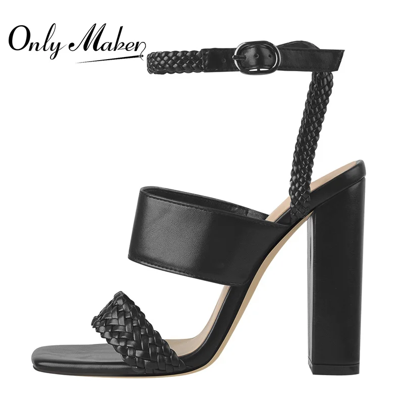 Женские босоножки с квадратным носком Onlymaker, черные и матовые босоножки на высоком массивном каблуке с пряжкой на щиколотке, лето 2021