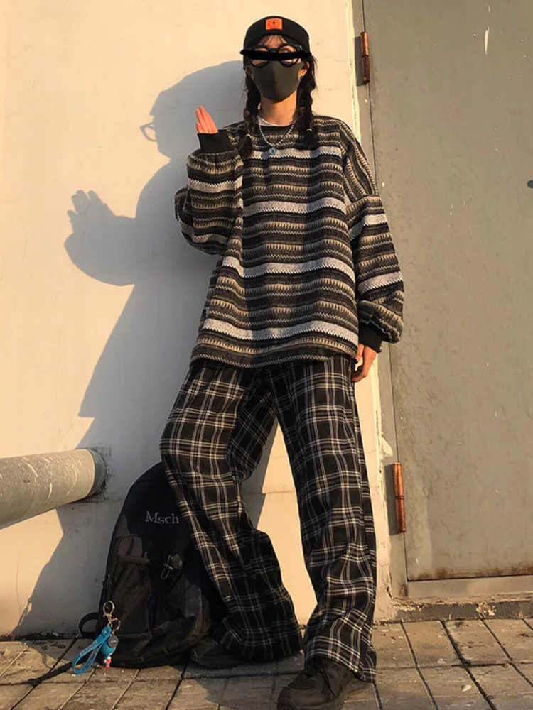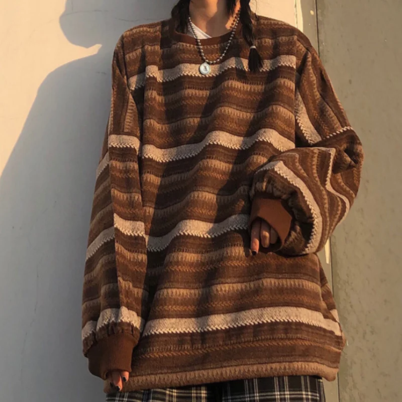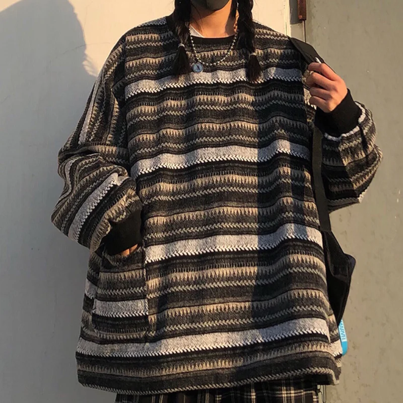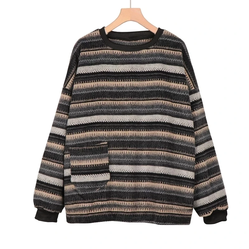 Свитер Женский вязаный в полоску, с длинным рукавом, свободный свитер с круглым вырезом