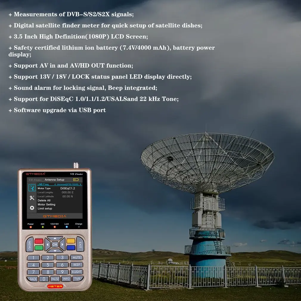 GTMedia V8 спутниковый Finder метр Высокое разрешение DVB-S2S2X Цифровой Сигнал Искатель 3,5 ''ЖК-дисплей Finder метр