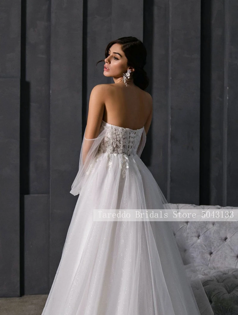 Пляжное кружевное свадебное платье с открытыми плечами 2022 милое со съемными пышными рукавами трапециевидной формы