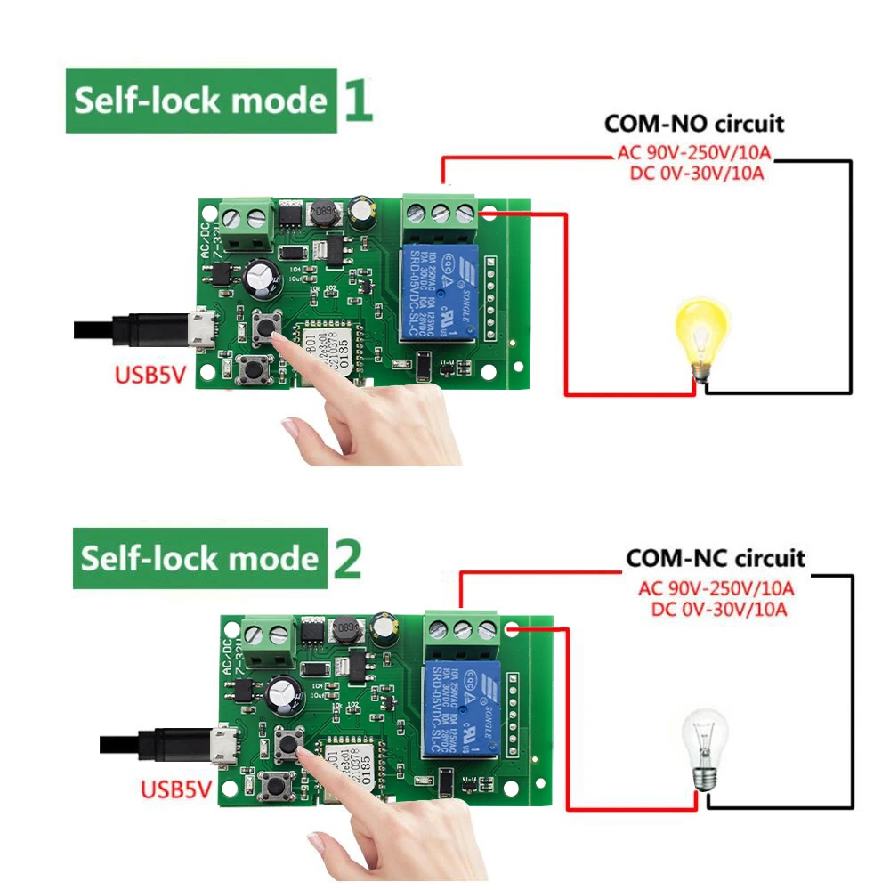 Совместим с любыми бытовыми приборами (DC7-32V 85-250 В переменного тока, максимальный ток 10А, максимальная мощность 2200 Вт). Небольшой модуль имеет возможность DIY для пользователей с базовыми знаниями электрика