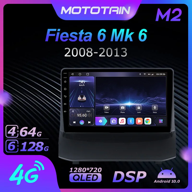 Автомагнитола Android 10,0 6G + 128G для Ford Fiesta 6 Mk 6 2008 - 2013, автоаудио GPS 4G LTE, головное устройство 1280*720