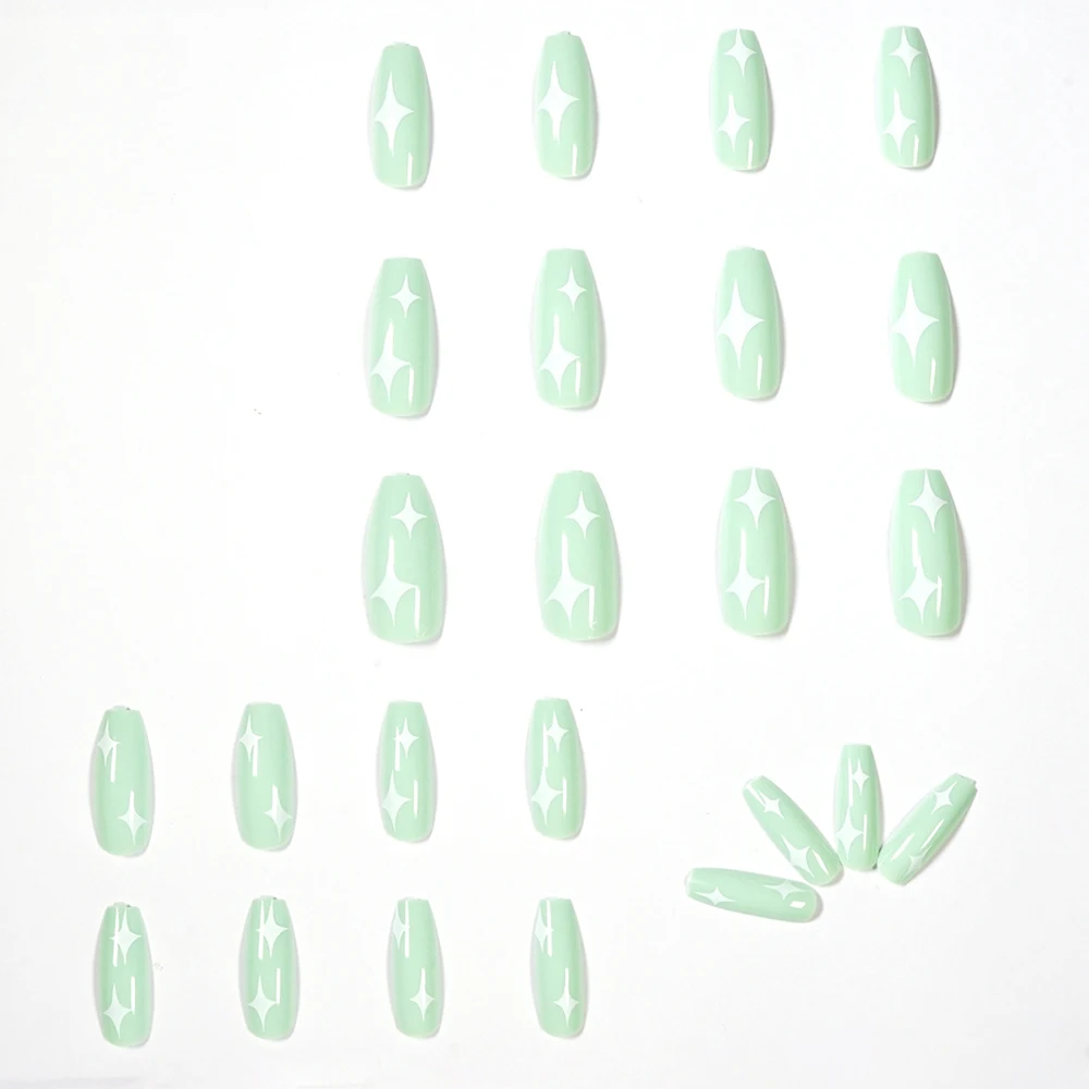 24 шт. милый белый цвет с рисунком звезд, накладные ногти для ног, удлиненные градиентные зелено-искусственные ногти наклейки балета ногти полными подсказками гроб поддельные ногтей