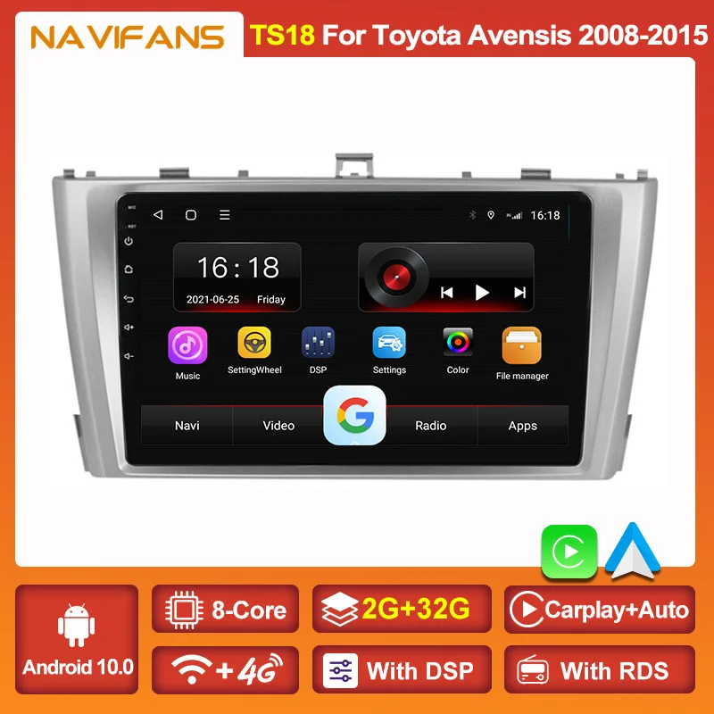 Автомагнитола DSP 2 din для Toyota Avensis 3 T27, 2008, 2014, 2015, навигация GPS, Android 10,0, мультимедийный видеоплеер, IPS экран, Wi-Fi