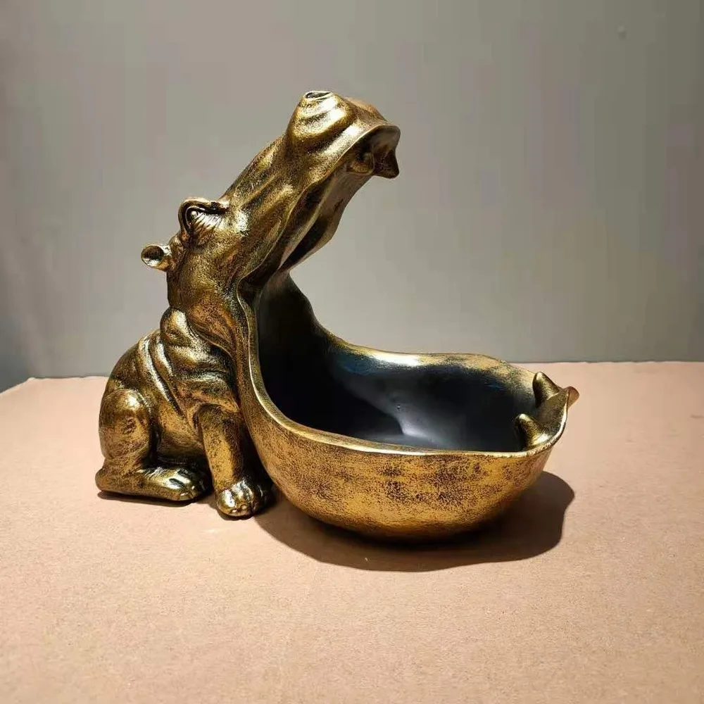 Фигурка бегемота с большим ртом, контейнер для хранения ключей, закусок, конфет, креативные фигурки бегемота из смолы, миниатюрные украшения, ремесла, домашний декор