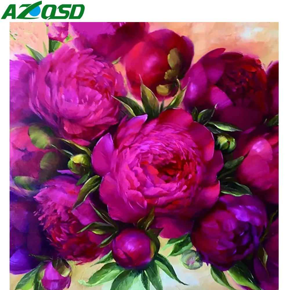 AZQSD 5D алмазная вышивка полностью квадратнаякруглая дрель пион ручная работа подарок Алмазная картина цветок вышивка крестом наборы Декор подарок