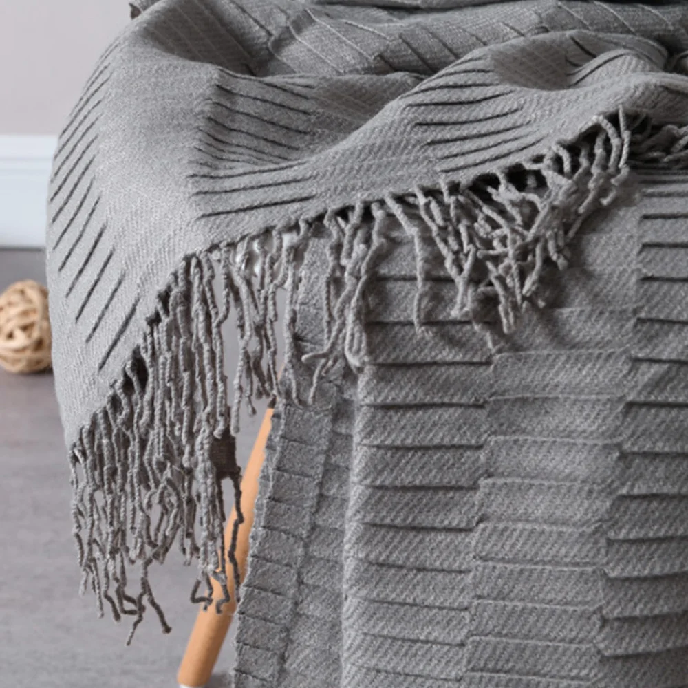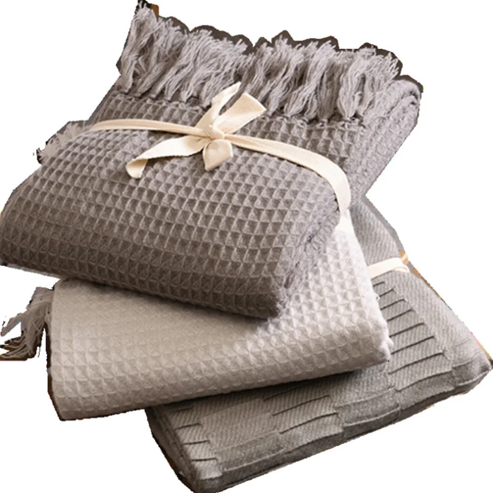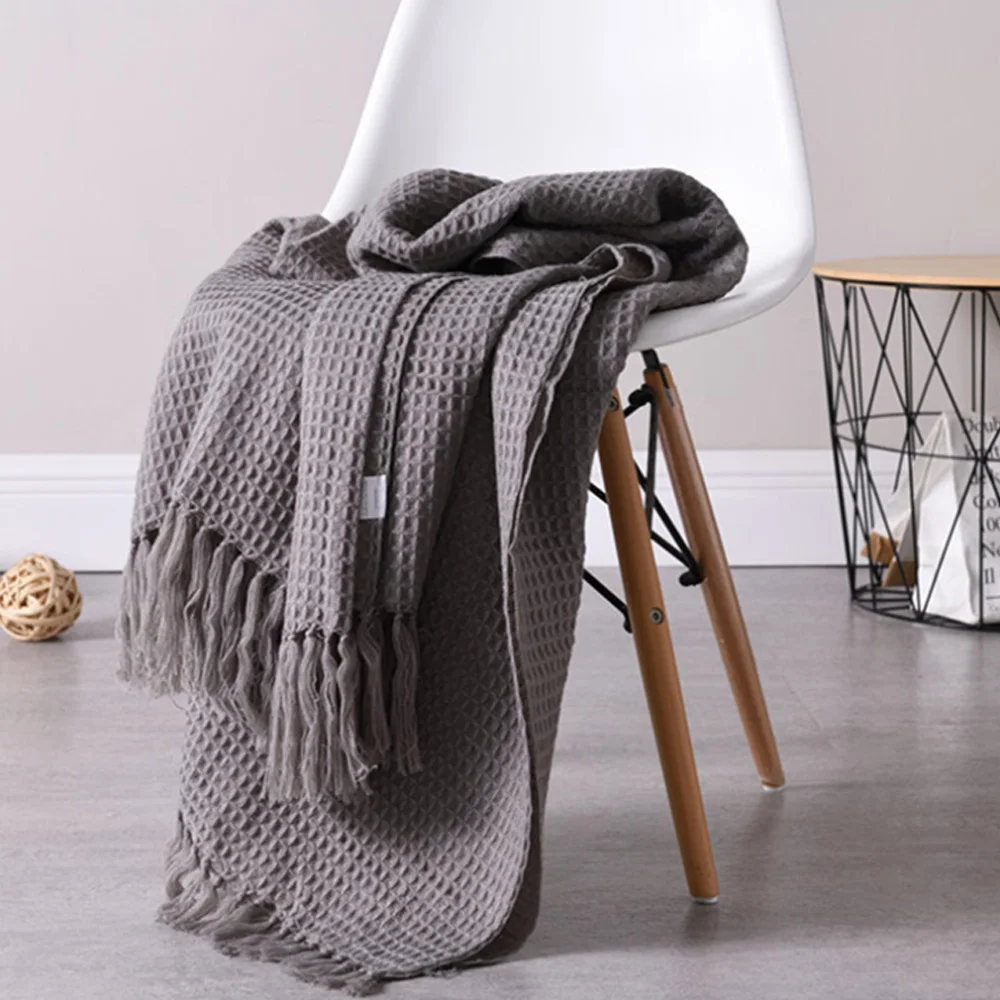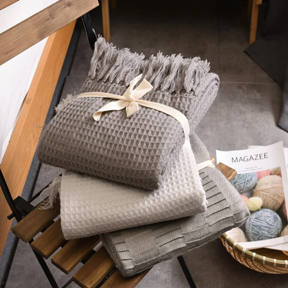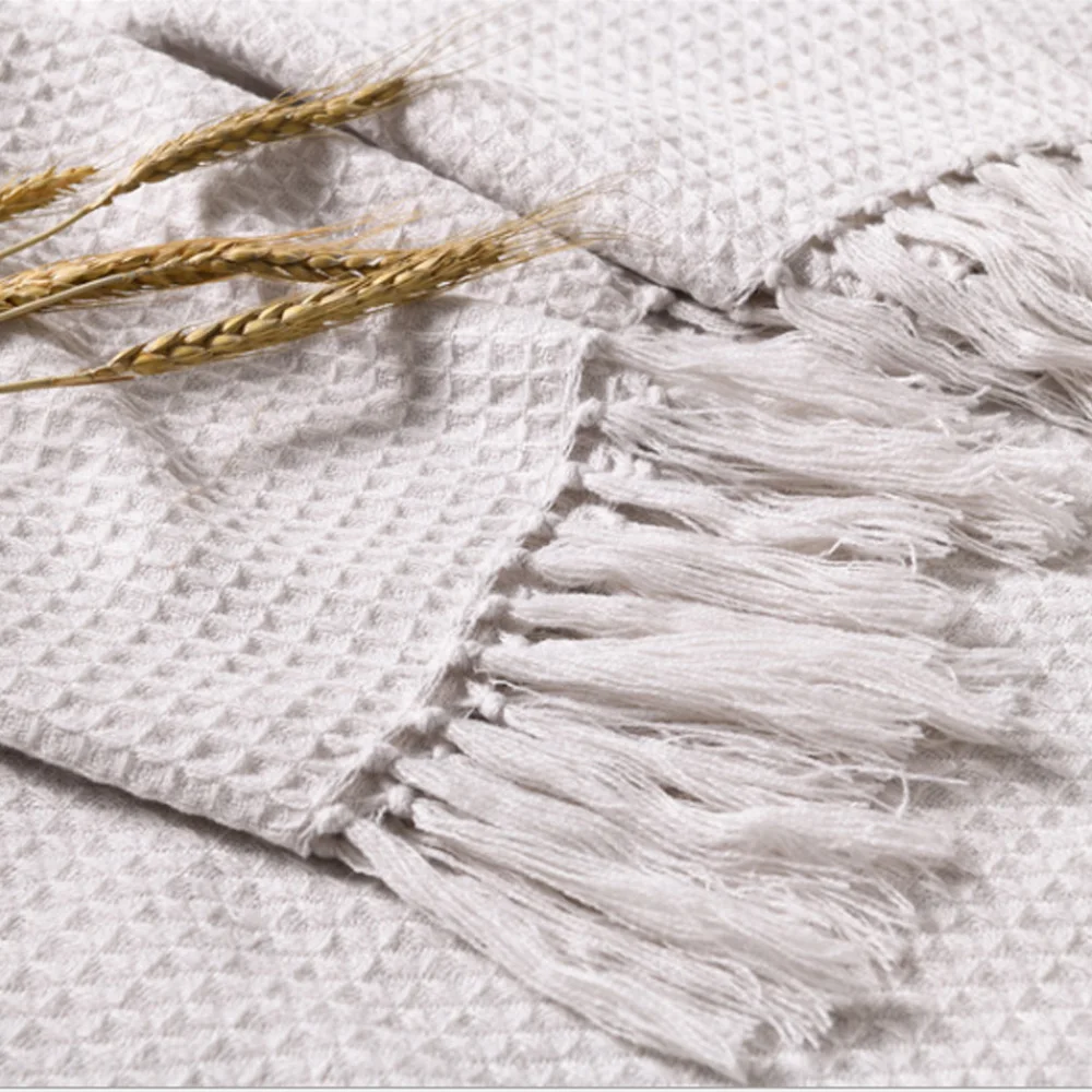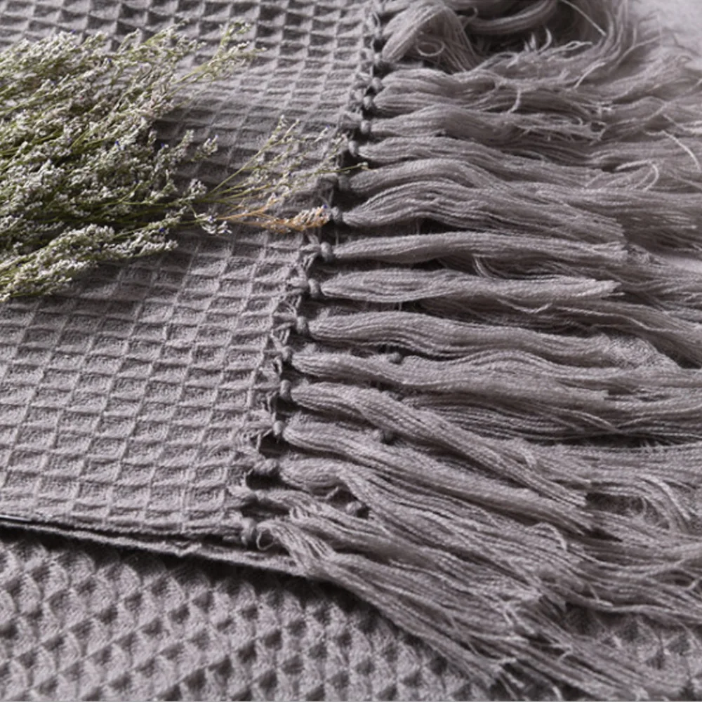 Вязаное одеяло с Вафельной бахромой, летнее муслиновое покрывало, мягкое, теплое, плед, большое, тонкое светильник, для отдыха