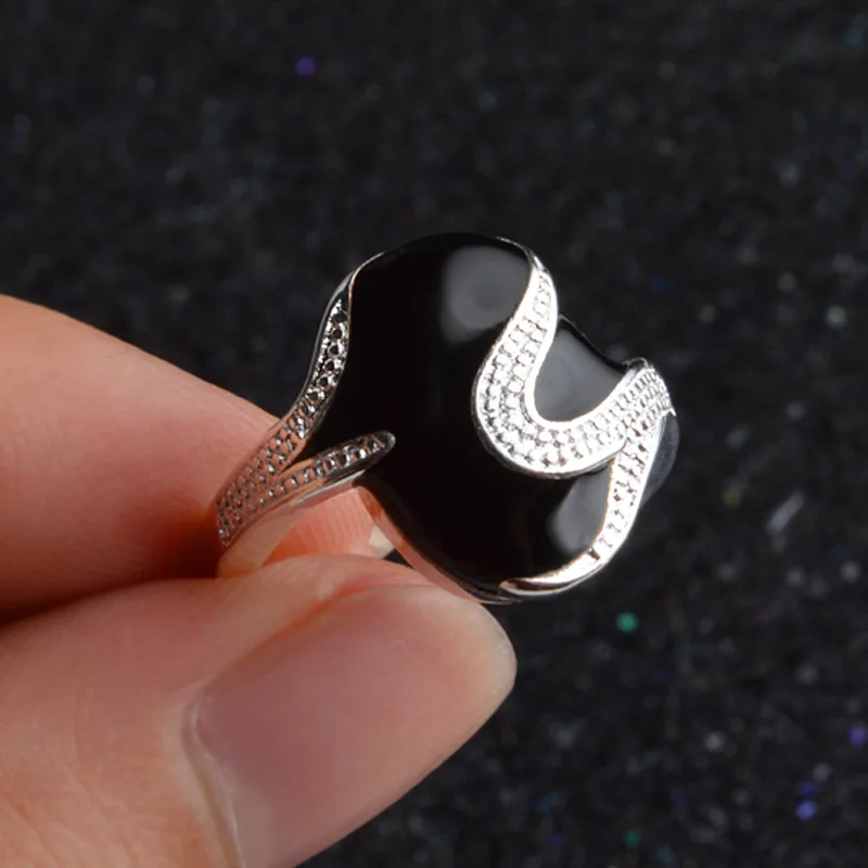 Изысканные посеребренные черные глянцевые кольца в форме капли 2021, модная женская повседневная одежда, металлическое кольцо для женщин, трендовые ювелирные изделия для коктейвечерние