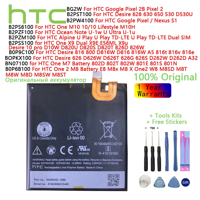 Оригинальная батарея HTC B2PS6100 B2PZF100 B2PZM100 B2PW4100 B2PST100 BG2W B2PS5100 B0P9C100 BN07100 BOP6B100 BOPKX100, батарея для телефона