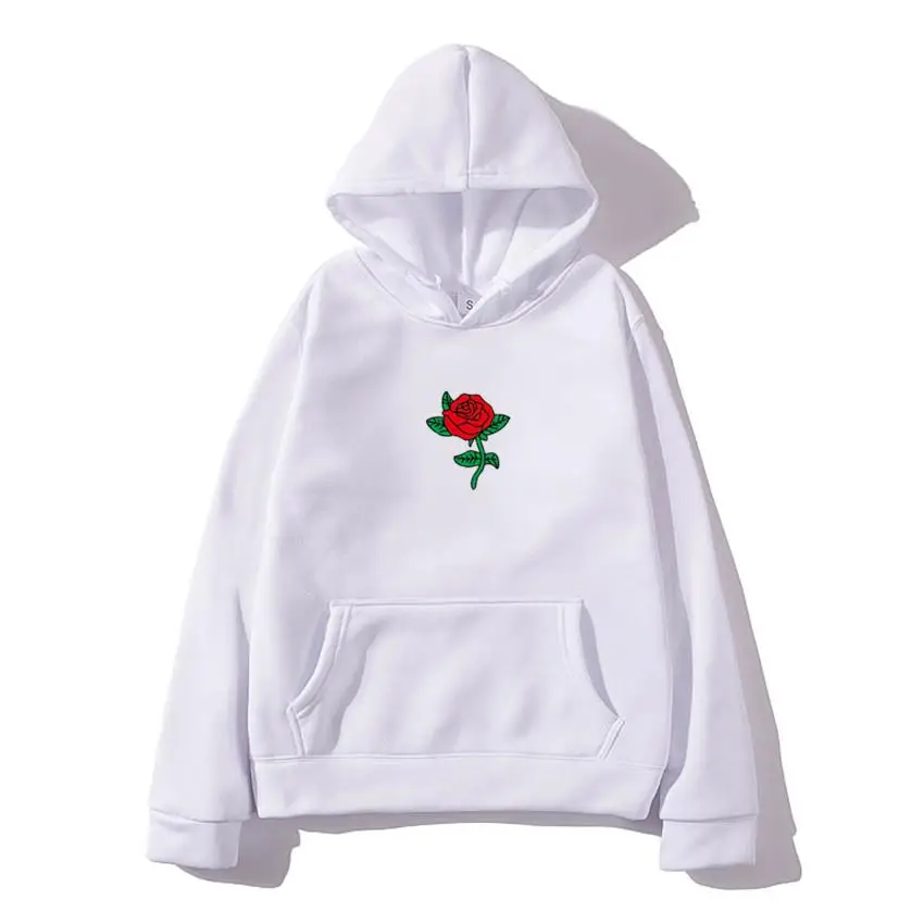 Толстовка с капюшоном, с принтом красных роз, толстая флисовая зимняя Толстовка в стиле Харадзюку, уличная одежда для мужчин и женщин, Модный пуловер на осень-зиму 2021