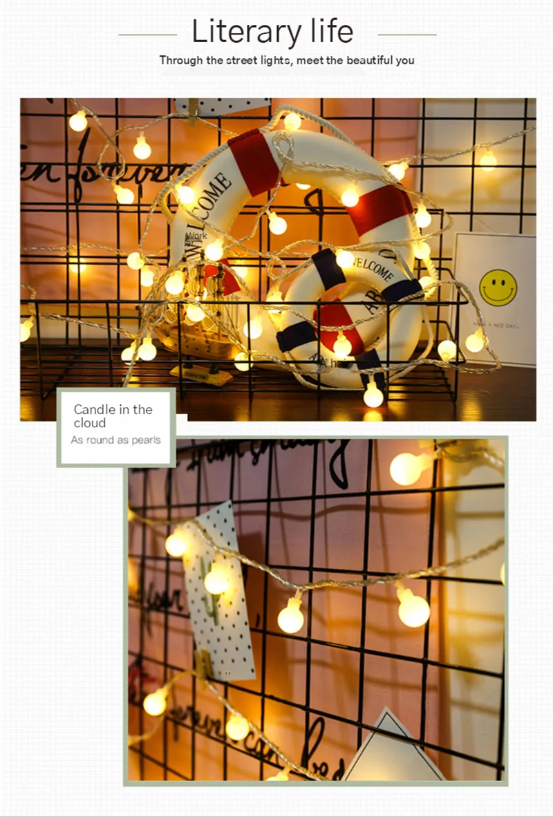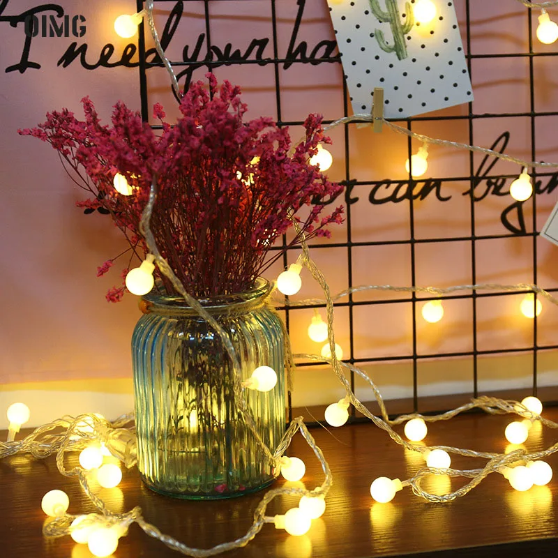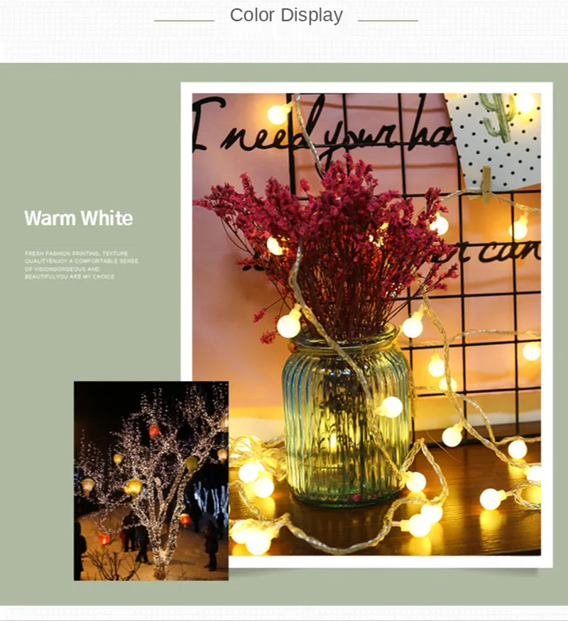 Гирлянда с круглыми шариками, 2 м, 10 светодиодов, питание от аккумулятора, водонепроницаемое праздничное, свадебное, Рождественское украшение, светильник