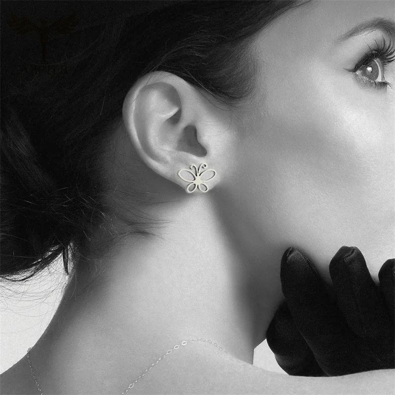 Серьги-гвоздики женские, из нержавеющей стали, в форме бабочки